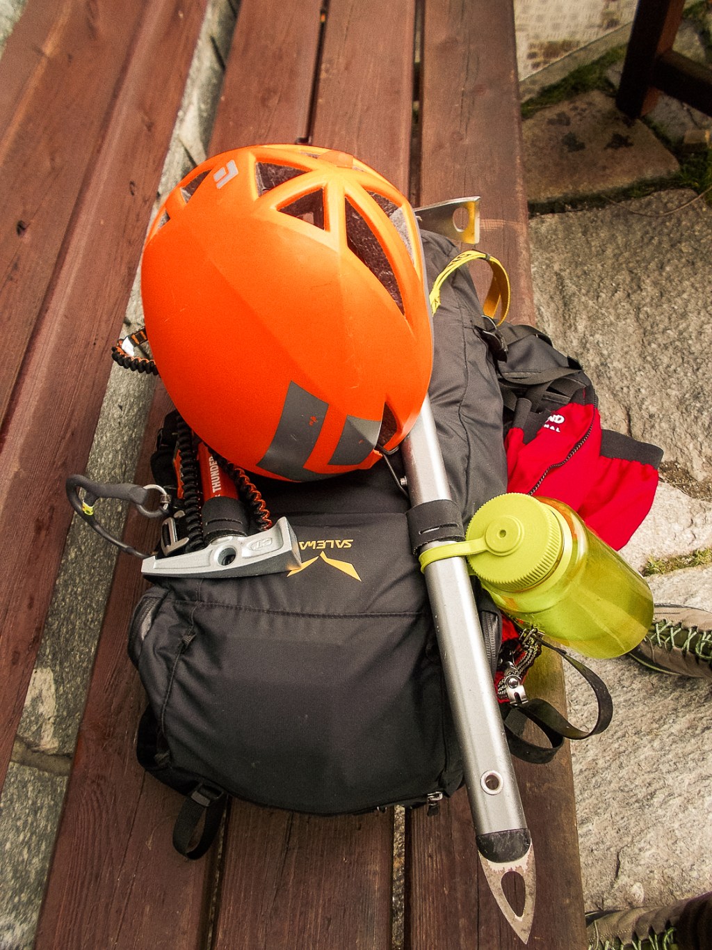 2 Seilschaften, je 12 Klemmkeile, je 10 Friends, 5 Schlaghaken für den Notfall, 1 Alpinhammer, 1 Nacht in der Hütte und 1 Tag körperlicher Verausgabung.