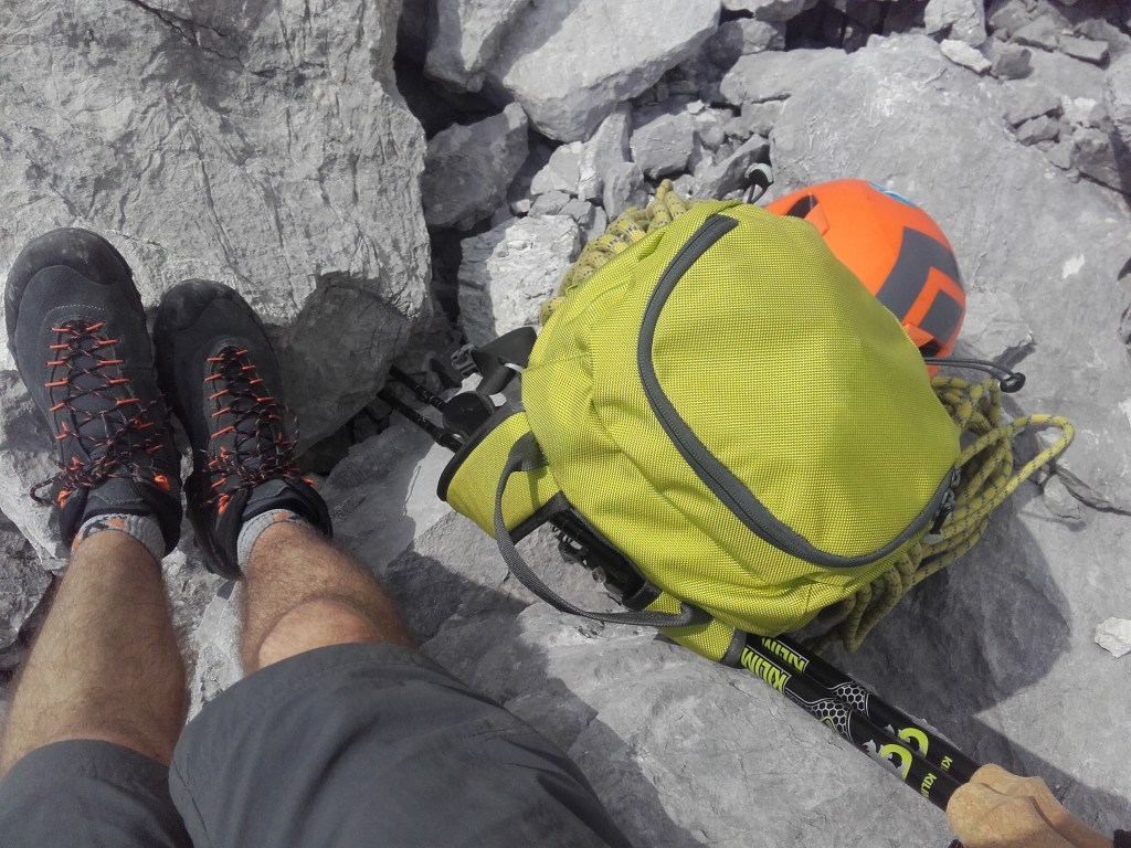 Bei Trittsicherheit und trockenen Verhältnissen kann man den Abstieg sicher auch ohne Sicherung bewältigen, allerdings muss man sich seiner Sache da schon sehr sicher sein und meinen turnschuhtragenden Seilschaftspartner wollte ich an diesem Tag nicht abstürzen sehen.