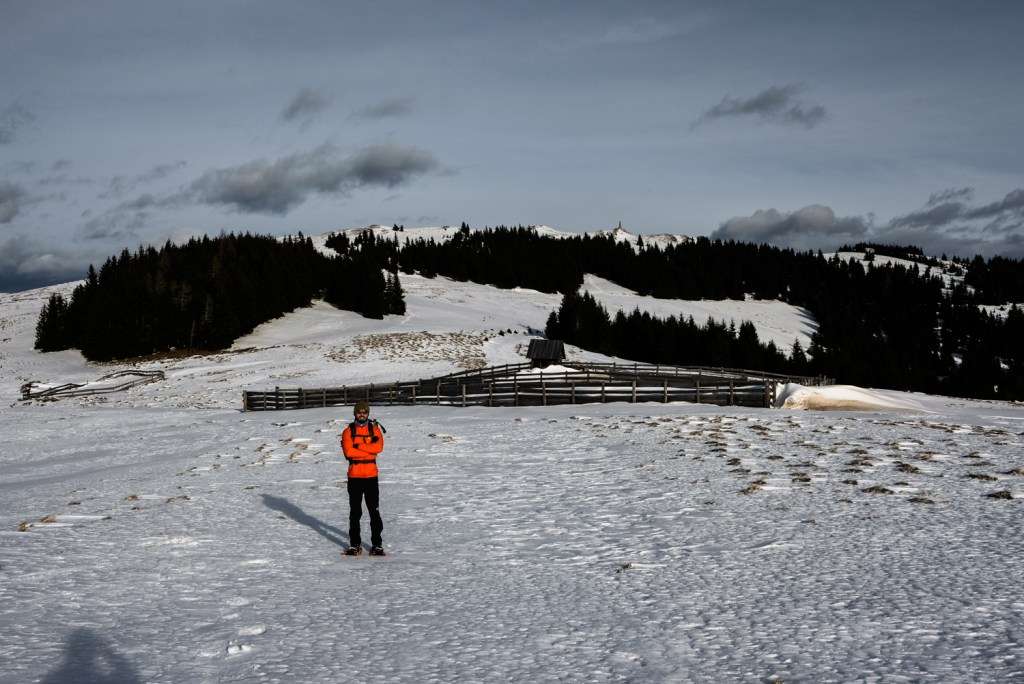 Die meiste Zeit brauchten wir die Schneeschuhe allerdings gar nicht, da der Schnee gut niedergetreten war und die Wege sowieso auch befahren werden. Erst als wir vom alten Almhaus Richtung Salztiegl gehen und uns entscheiden einfach Richtung Schwarzkogel abzubiegen, wird es notwendig um nicht tiefer einzusinken.