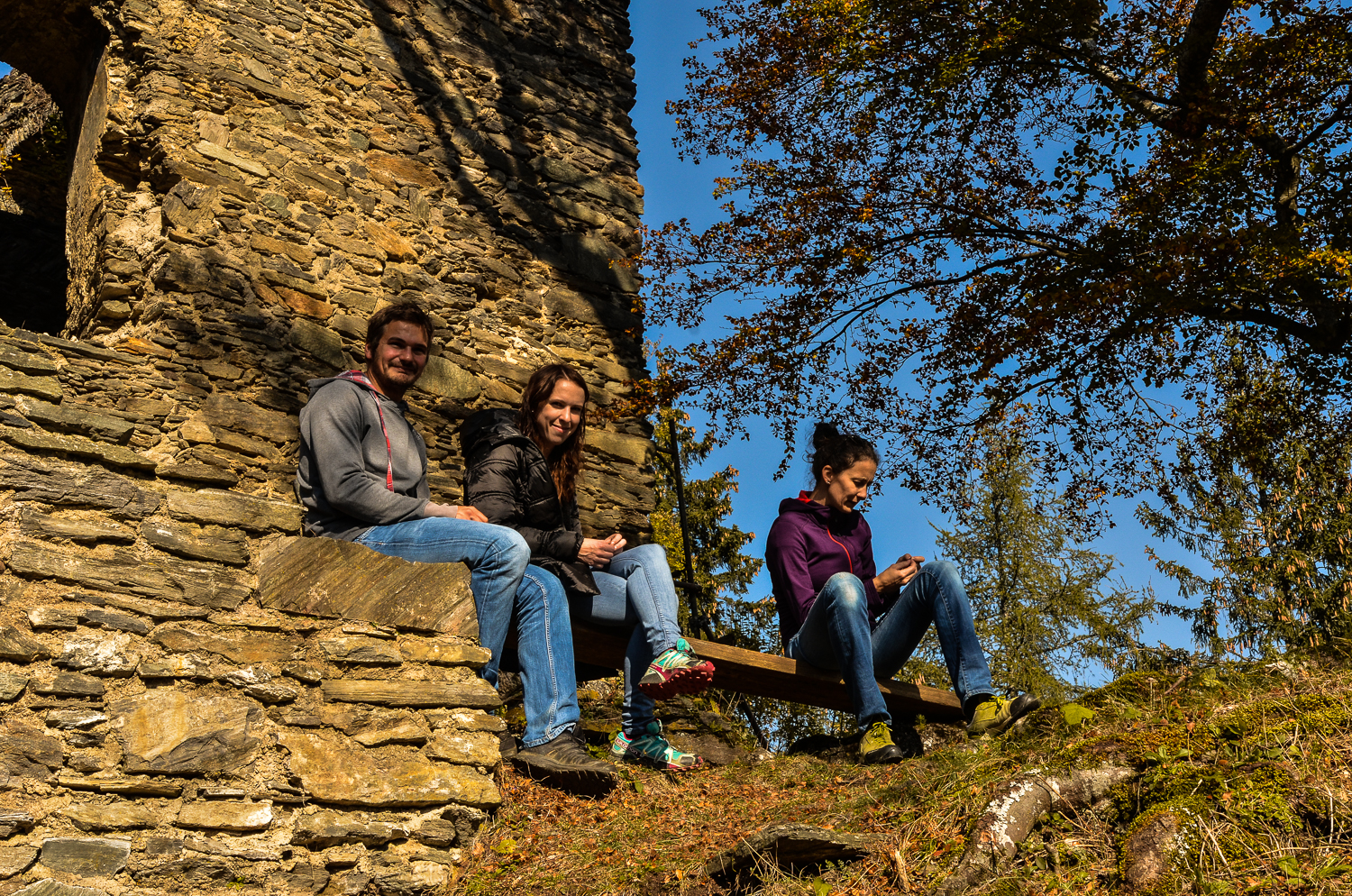 Die Burgruine erweist sich als sonniges Plätzchen wo man sehr schön einige Sonnenstrahlen einfangen kann und es sich unter der großen Buche bequem machen. Für einen Nachmittagsspaziergang also perfekt – zudem hat man auch einen schönen Ausblick auf Ausläufer der Gleinalm und die rundum liegenden Waldflächen.