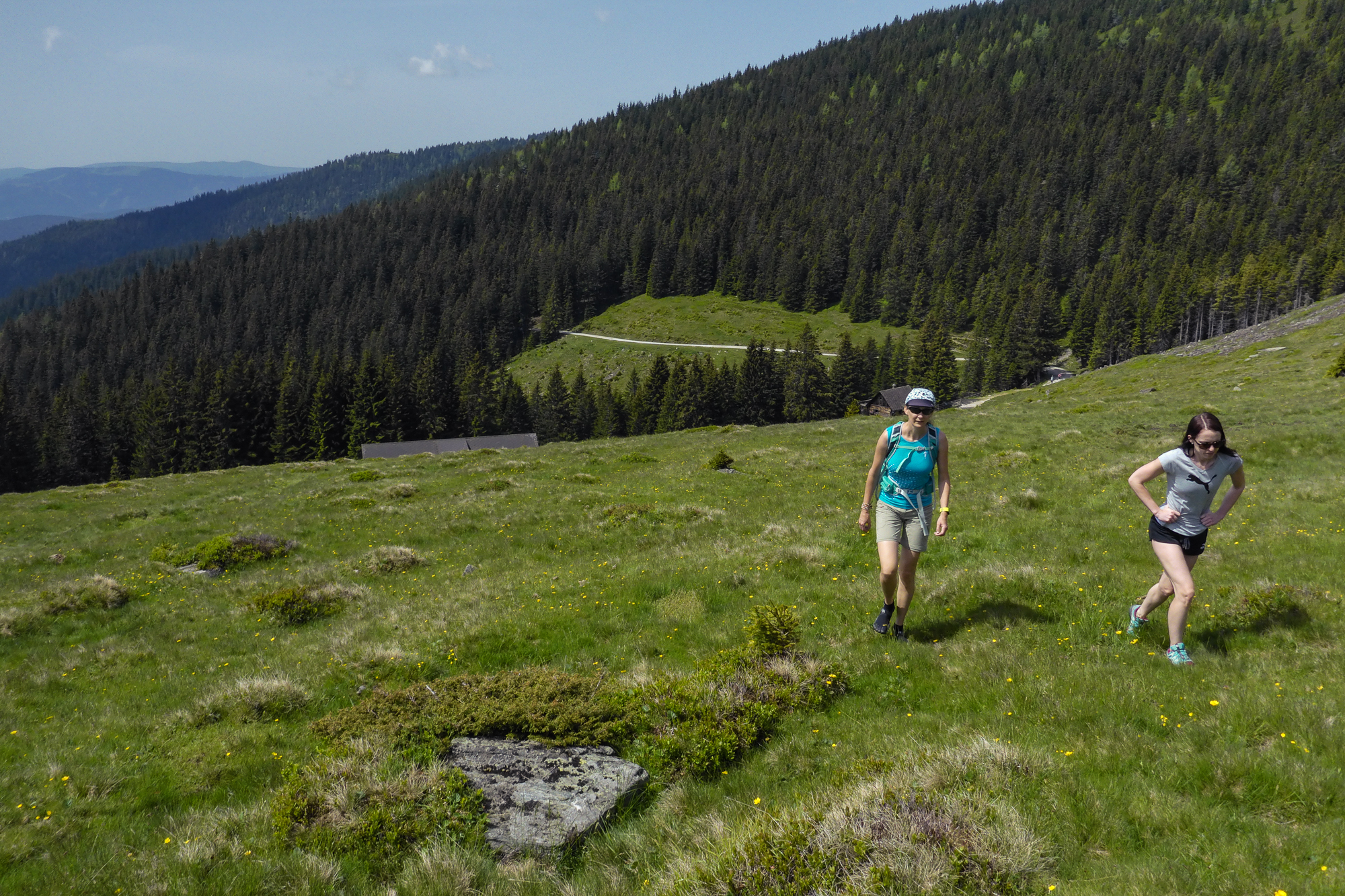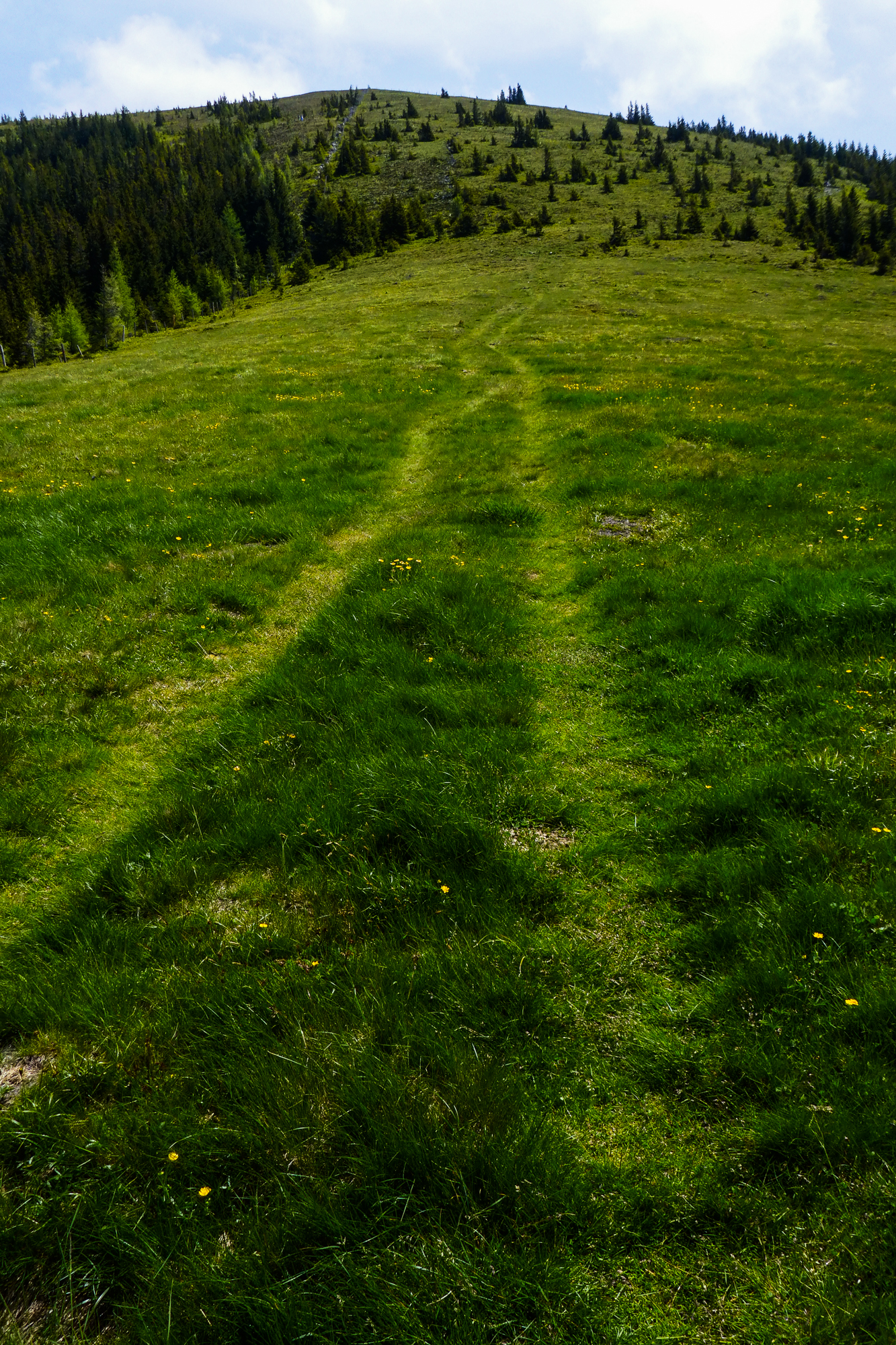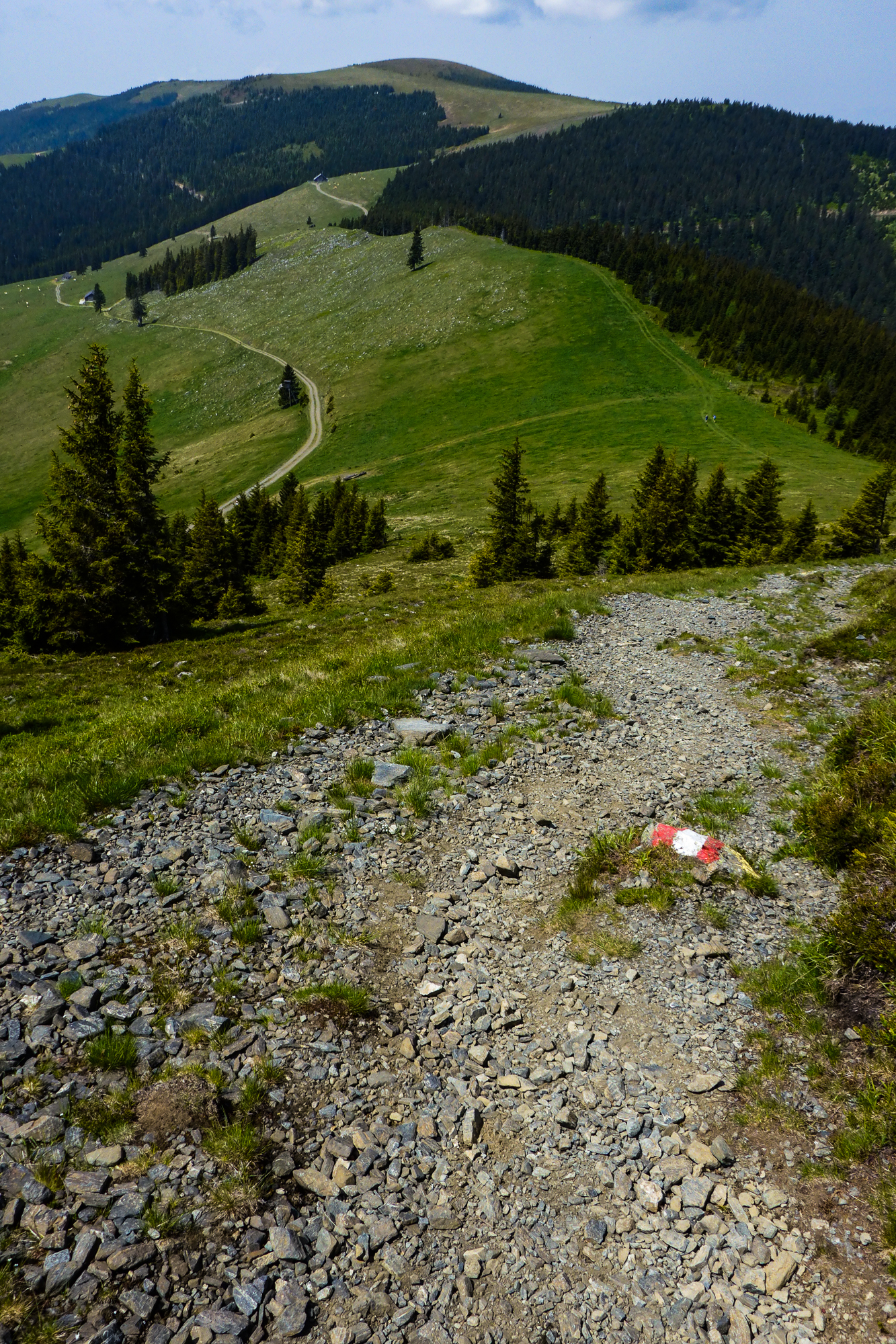 Eine Verlängerung zum Gleinalmschutzhaus sparen wir uns heute, stattdessen gehen wir zuerst den gleichen Weg zurück um auf der Terenbachalm abzuzweigen und das Gipfelkreuz dieser Alm noch mitzunehmen. Über eine malerisch Almenlandschaft geht es bis zur Christusstatue und anschließend wieder hinunter zum Oskar-Schauer-Haus.