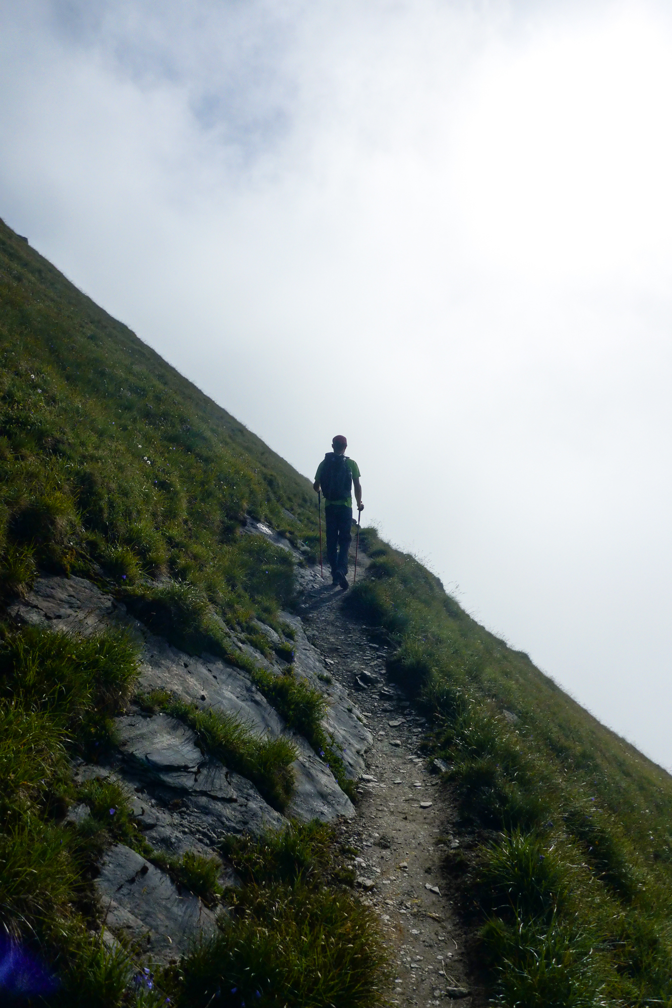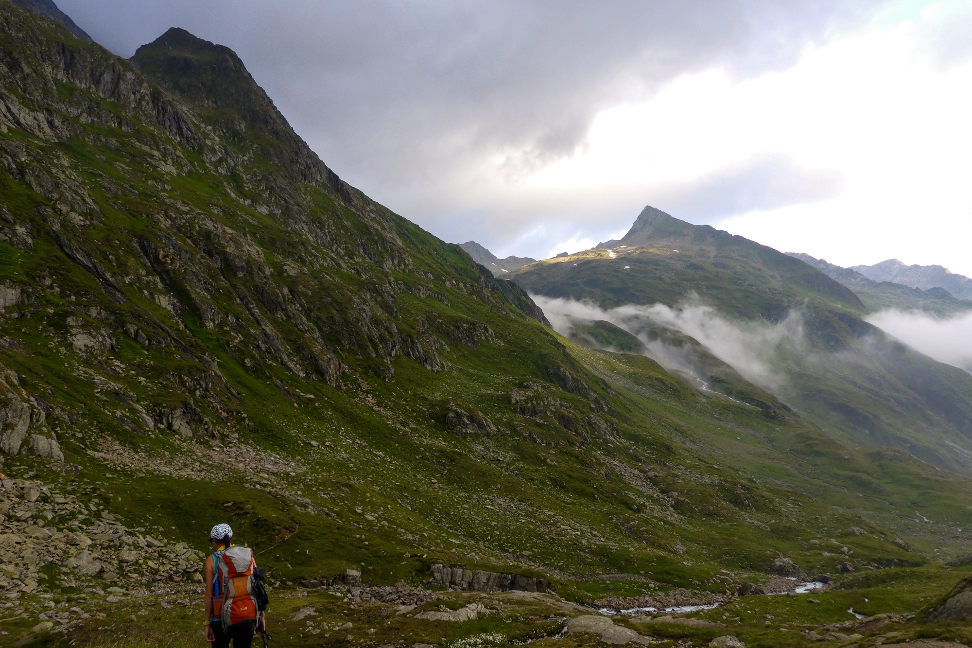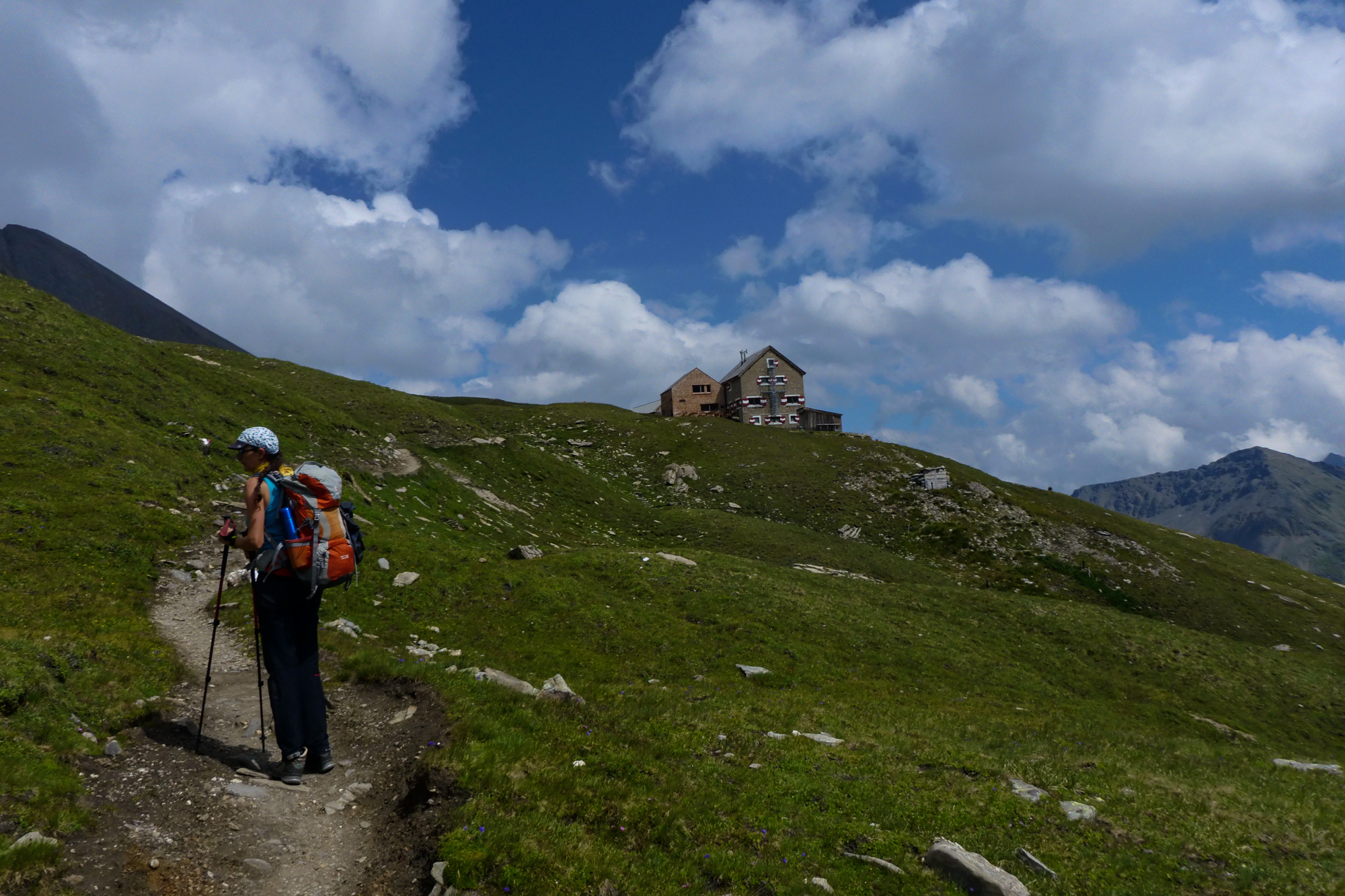 Lediglich 4 Stunden Gehzeit und nur 600 Höhenmeter? Das klang nach einem entspannten Tag und einem Chill-Out bei der Hütte. Doch schon bald nach der Nossi war es vorbei mit dem gemütlichen Wandern und es ging in Serpentinen und Querungen steil bergauf. Die gesamten Höhenmeter wurden hier in einem Aufwasch erledigt und das Gelände wurde immer fordernder.