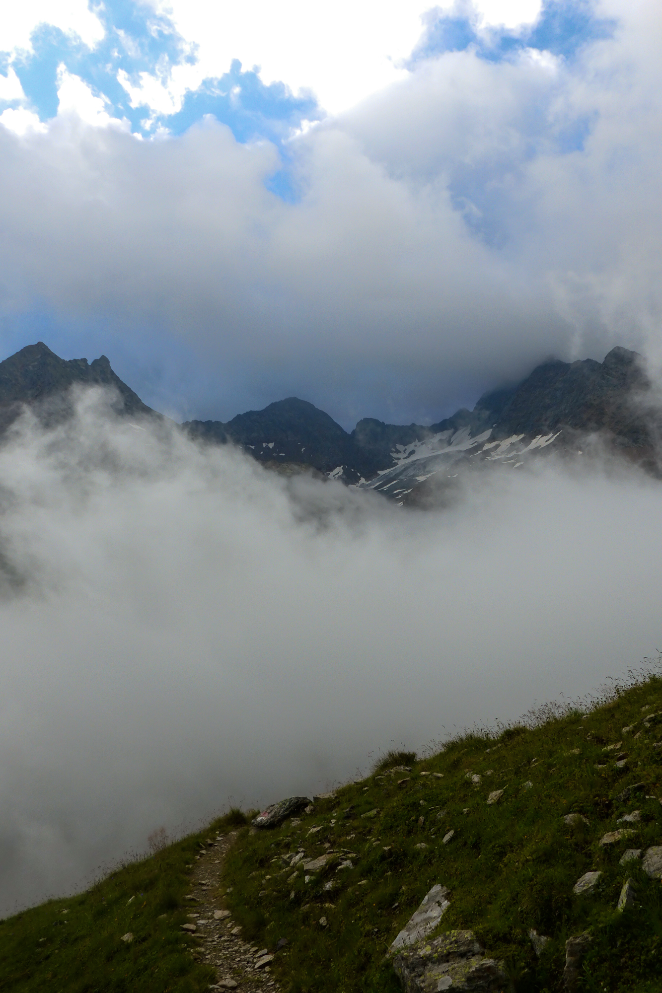 Von der Scharte bis zur Elberfelder Hütte benötigten wir etwas mehr als 1 Stunde und genossen den Nachmittag während die Wolkendecke immer dichter wurde. Nur der erwartete Regen kam nicht. Dafür war der Hüttenwirt auch ein Bergführer und die wissen was wichtig ist. Der Trockenraum war immer beheizt und wir konnten unsere Schuhe sowie unsere gewaschene Kleidung richtig trocknen lassen.