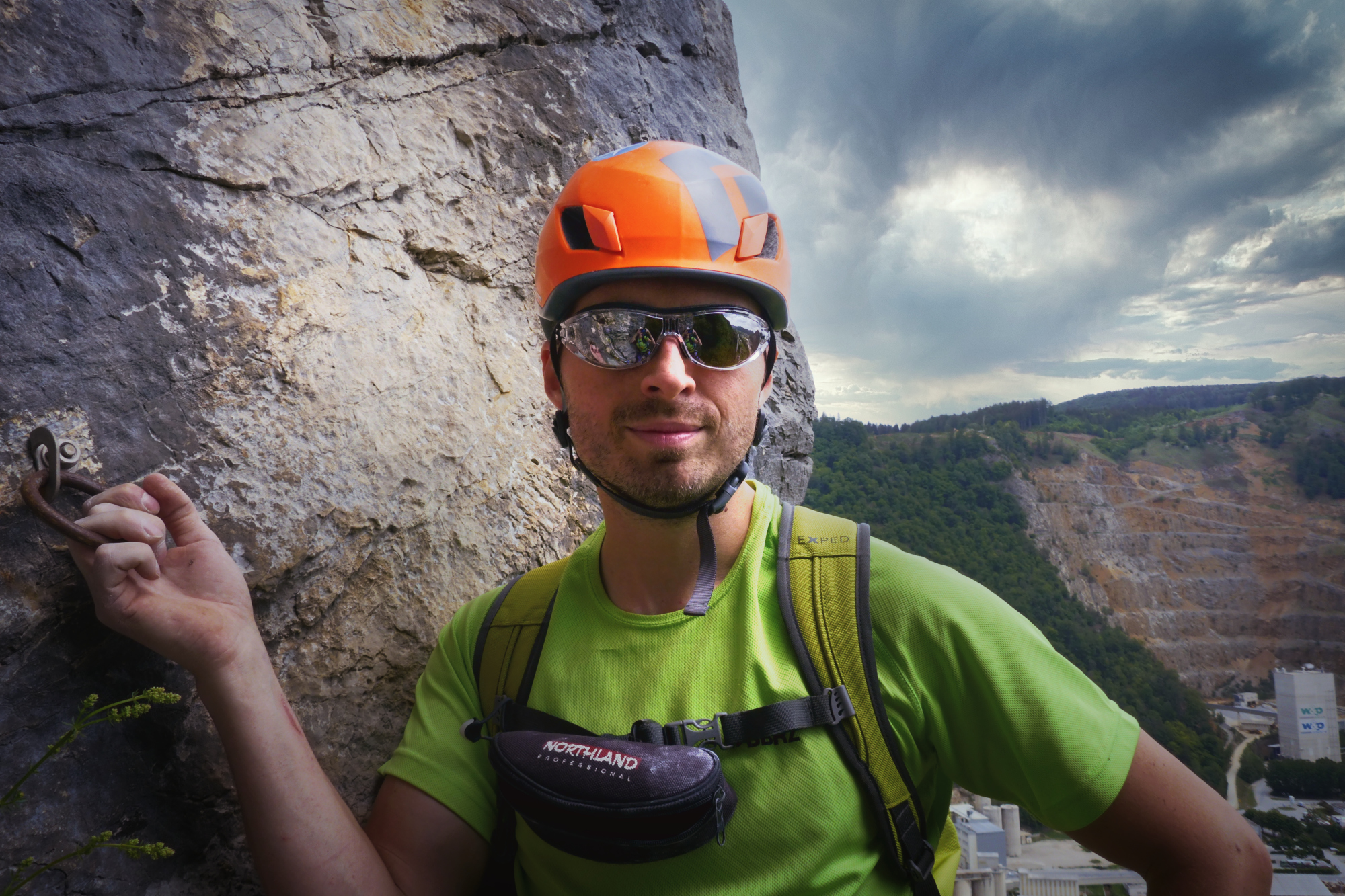 Ich glaube sogar, es gibt in dieser Route mehr Geh- als Klettermeter und auch auf das Gesamterlebnis kann getrost verzichtet werden. Im Übrigen, da wir kein Papiertopo dabei hatten und ich die Route nicht kannte, musste ich bei jedem Stand auf das Smartphone schauen – sehr umständlich, ich weiß nicht wer das freiwillig macht.