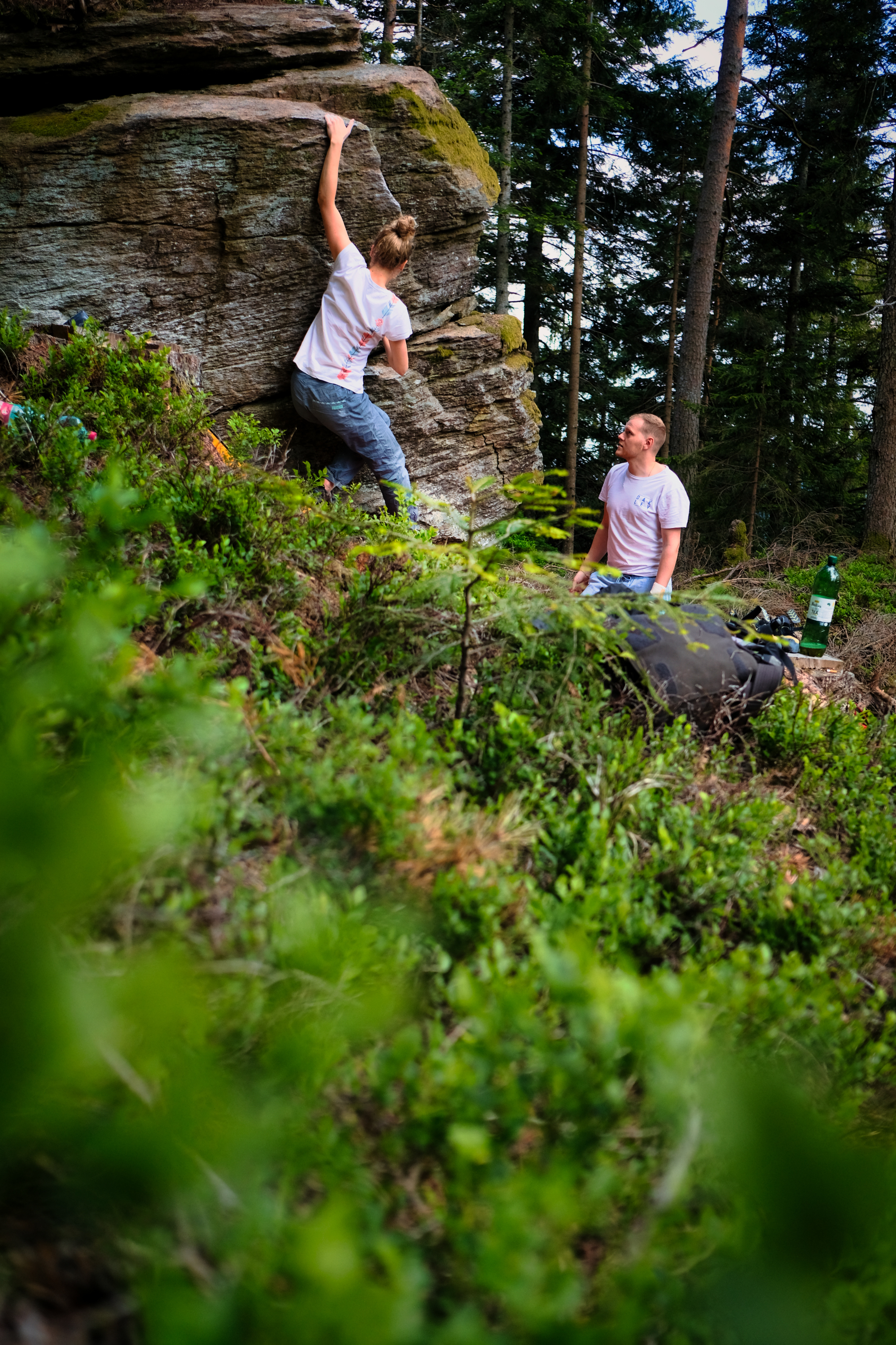 Gebouldert wird an den Blöcken und Wänden schon viele Jahre. Als wir sie vor mehr als 10 Jahren entdeckten, fanden wir schon Chalkspuren und geputzte Griffe. So auch in letzter Zeit als ich ein wenig Zeit mit dem Putzen der Blöcke verbrachte und immer mehr freigelegte Griffe und Tritte sowie Chalkspuren finden konnte – anscheinend sind doch noch andere vom Potential überzeugt. Eine weite Reise dafür zu machen, lohnt sich wohl nicht – dafür ist die Felsqualität einfach zu schlecht, die Boulder zu wenig und zu leicht. Aber wer in der Nähe wohnt, dem wird das schon ganz gut gefallen.