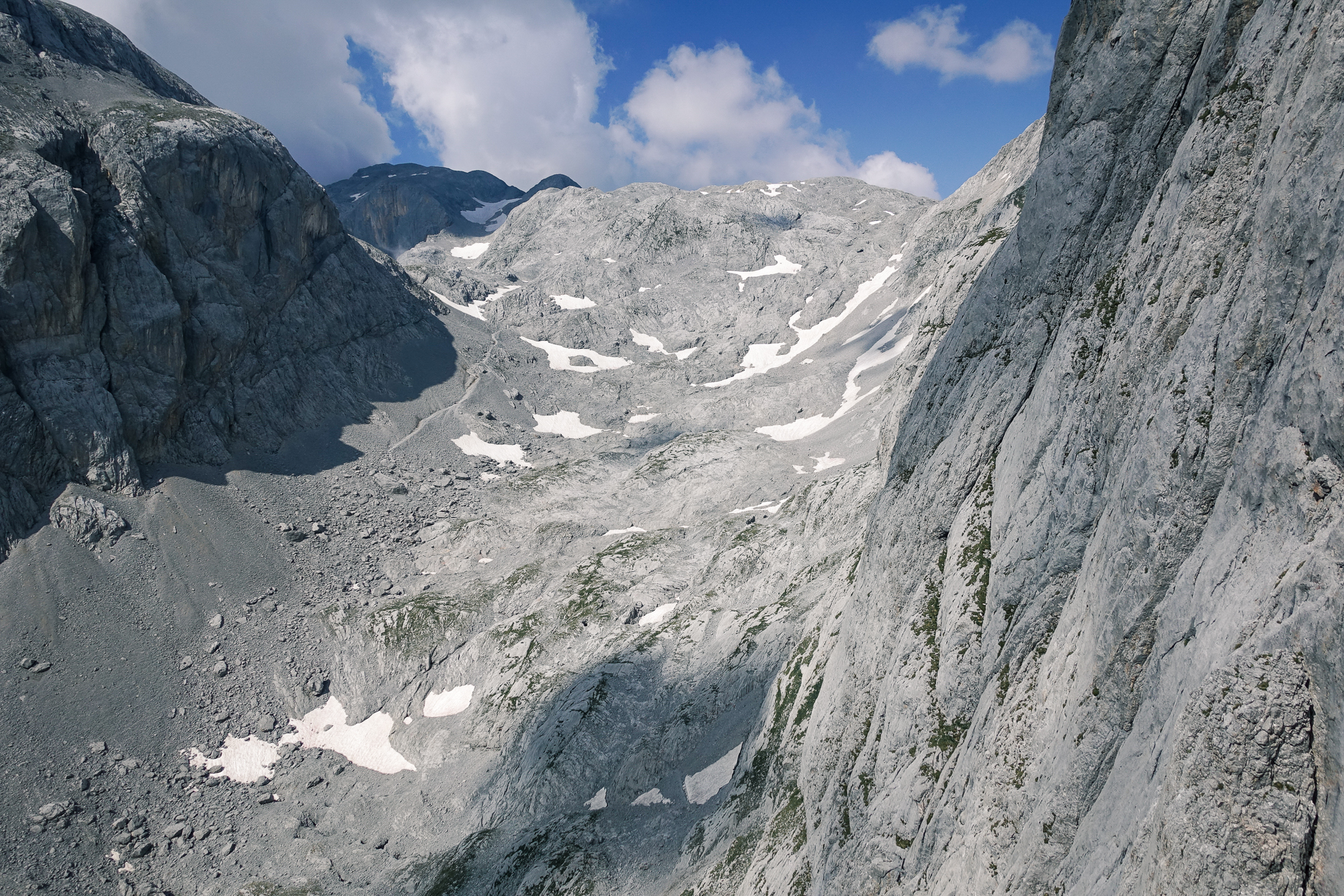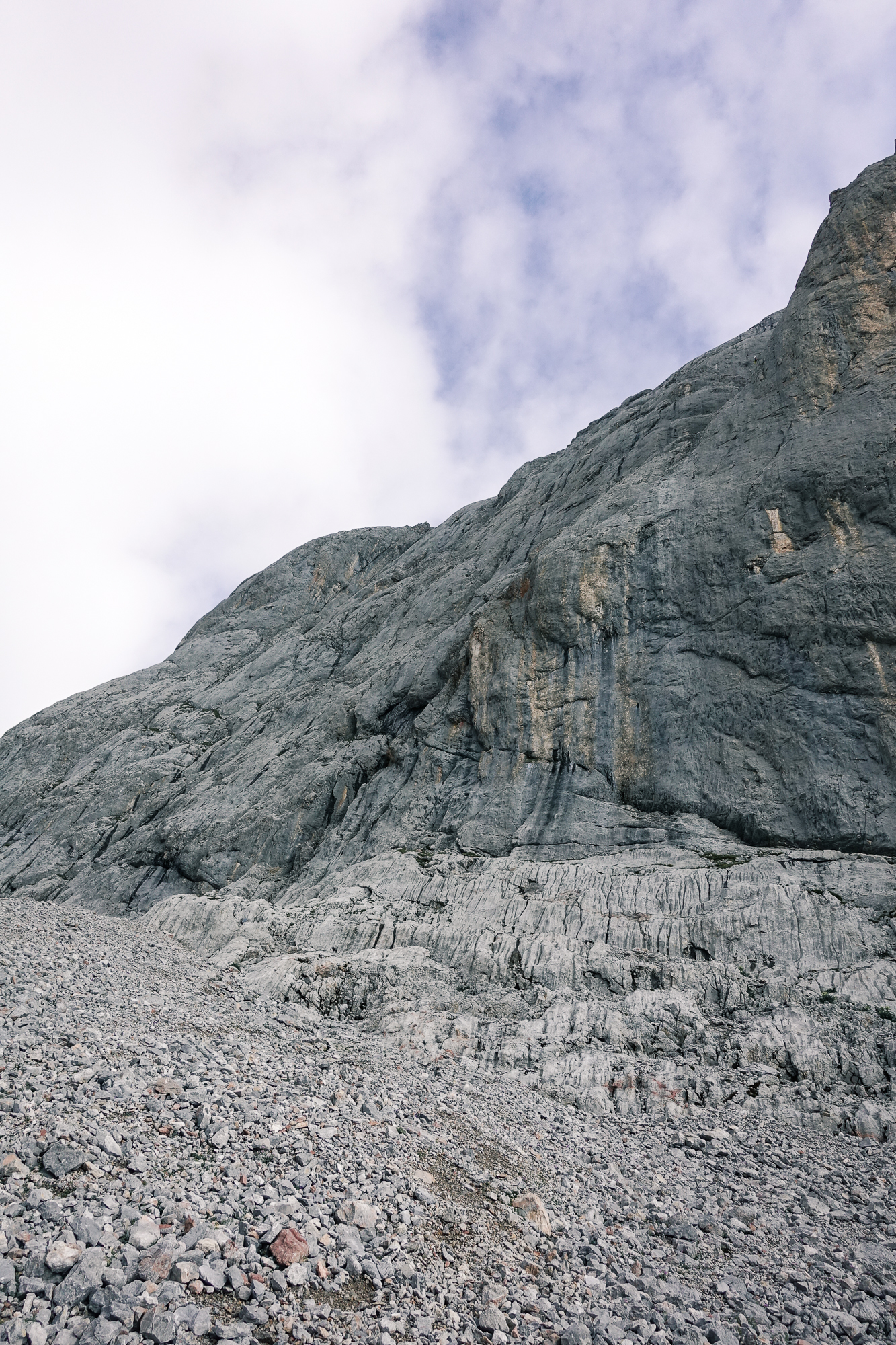 Der Dienstag startete so früh wie möglich um dem Gewitter am Nachmittag zu entgehen und die knapp 600HM Zustieg waren auch kein Lärcherl. Insgeheim rechnete ich mit 1,5h Zustieg, wie im Topo angegeben, aber trotz hohem Tempo und dementsprechendem Flüssigkeitsverlust benötigten wir für den Zustieg + anseilen 2 Stunden.