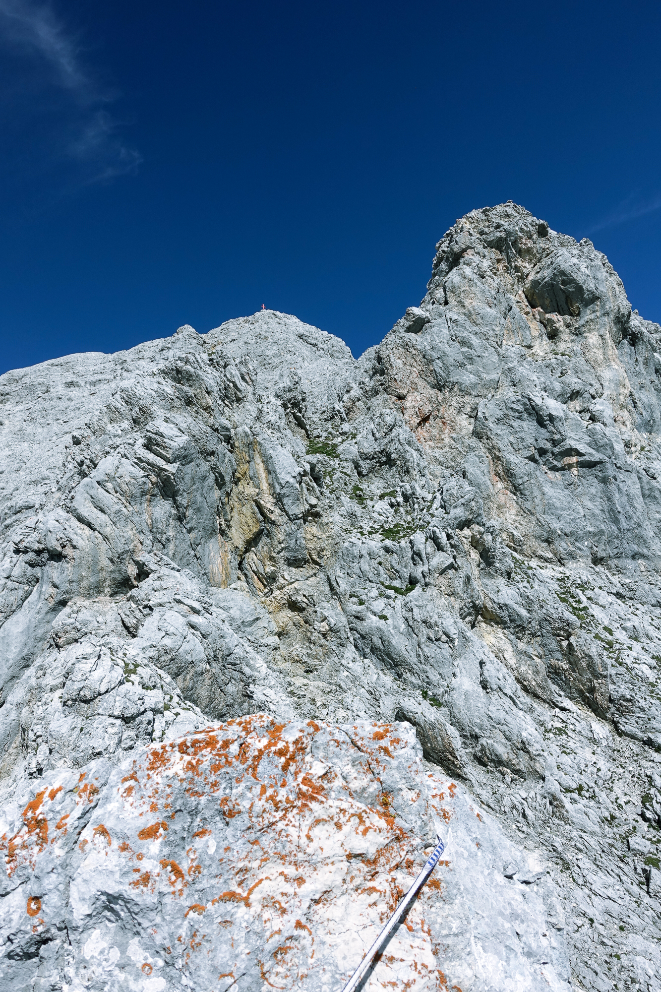 Von der Hütte weg hatten wir nur eine kurze Schonfrist bis unsere Oberschenkel unbarmherzig Höhenmeter fressen mussten. Auch wenn das Ziel (Gipfel) immer scheinbar zum Greifen nah schien, so waren die vor uns liegenden 14 Seillängen kein Lärcherl.