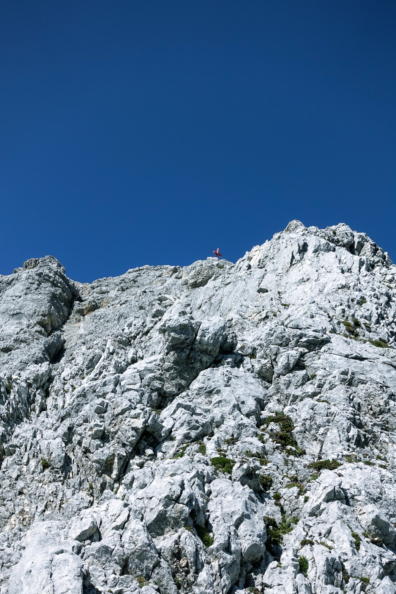 Die anderen Klettersteiggeher beäugten uns misstrauisch und manche scherzten über unsere Seile und das fehlende Klettersteigset. Wir verzichteten auf jede Diskussion und hetzten zum Gipfel, wo bereits eine anständige Party mit >40 Personen im Gange war.