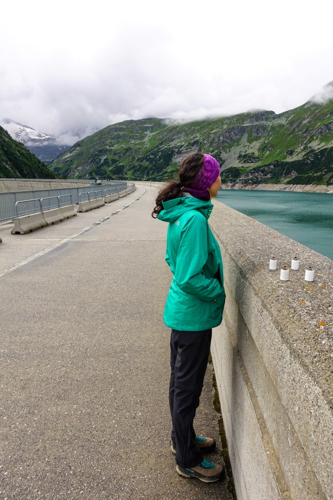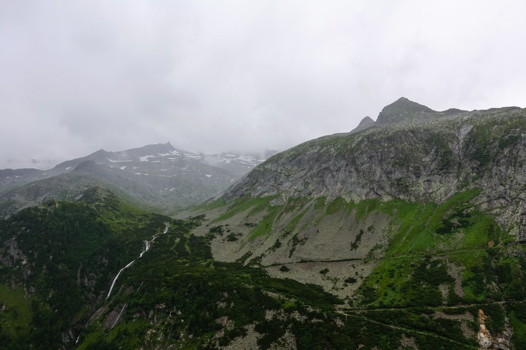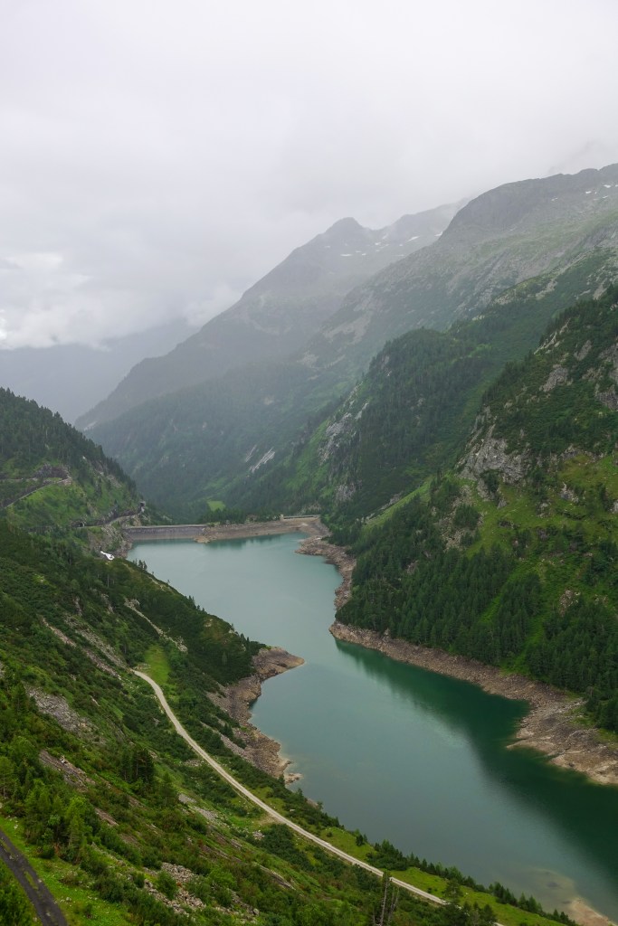 Vom Hotel Kölnbreinsperre wollten wir eine Mehrseillängenroute an den Seenplatten machen und tags darauf auch noch im Langkar eine Mehrseillängentour gehen. Doch am Montag hießen uns kalte Regentropfen willkommen und wir konnten in unseren wasserdichten Klamotten gerade einmal über die Sperre spazieren und uns dann die Kletterbewerbe bei den olympischen Spielen anschauen. Wenigstens zeichnete sich für Dienstag ein Wetterfenster ab, doch der Fels blieb nass.