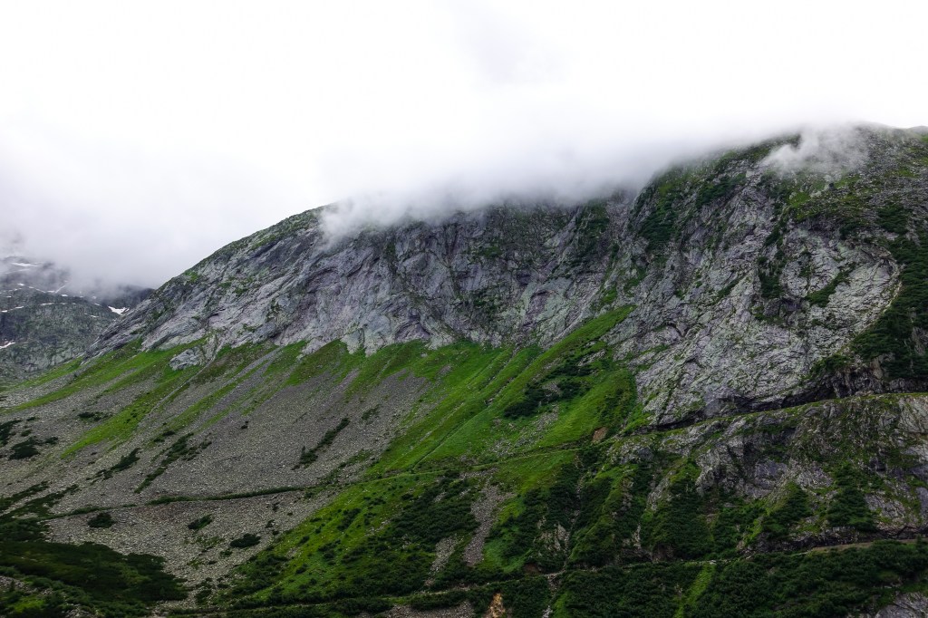 Anfangs begleitete uns die Sonne, die frischen Morgentemperaturen wichen langsam dem 20er Bereich und auf der Schotterstraße kamen wir gut voran und genossen eine beeindruckende Berglandschaft hier oben.