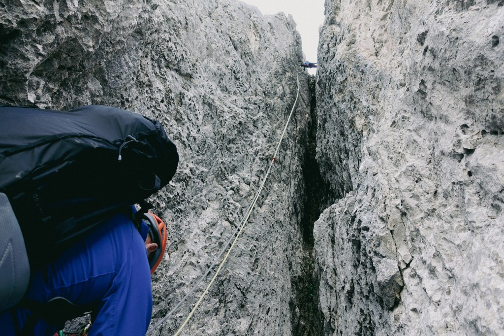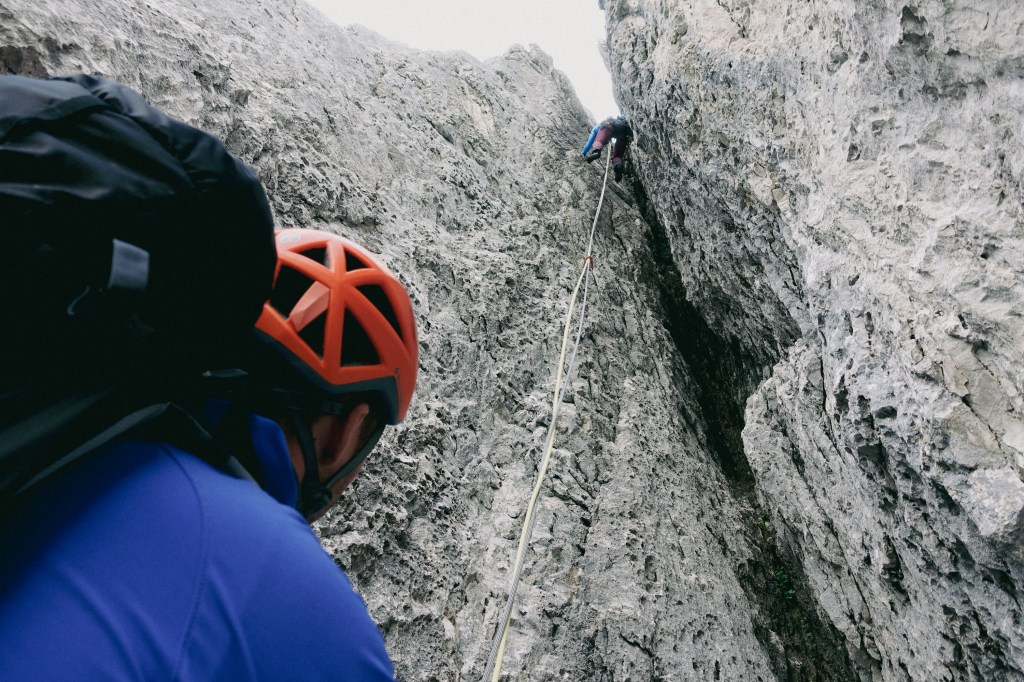 Der Kamin in der letzten Seillänge zog steil nach oben und ich war einigermaßen froh, den Vorstieg hier an meine Seilpartnerin abgeben zu können, die diesen souverän kletterte.