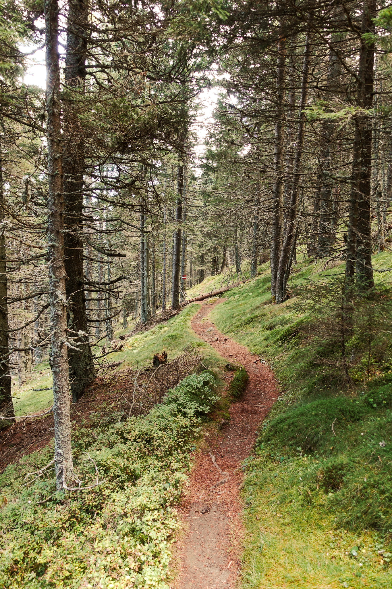 Vor der Turneralpe waren noch ein paar Höhenmeter im Wald zu gehen aber nach wenigen Minuten wird das Gelände schon wieder halbwegs eben und schlängelte sich weiter durch den Wald.