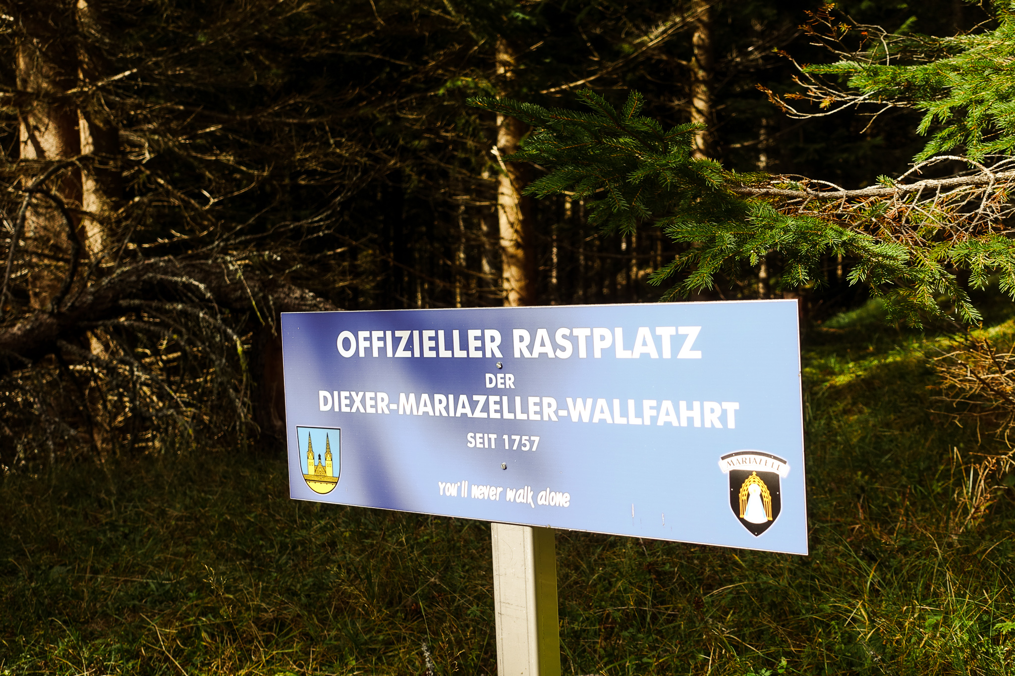 Danach ging es etwas bergab über eine Forststraße und wir folgten den Wegmarkierungen weiter Richtung Sattelhaus (Oskar Schauer Haus). Hier existiert auch ein „Offizieller Rastplatz“ der Maria-Zeller-Wallfahrer – fraglich ob diese Inbesitznahme genehmigt wurde 😉