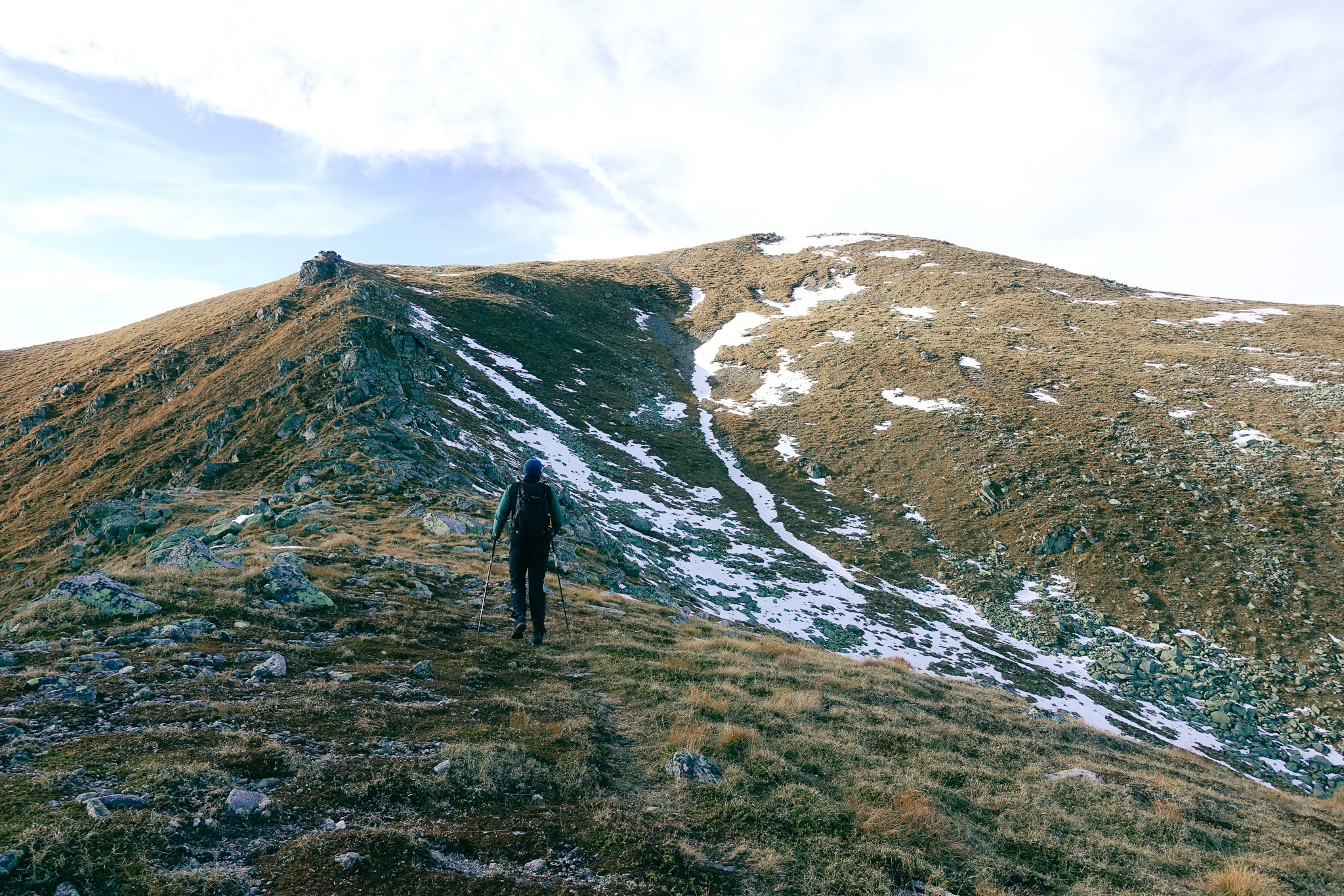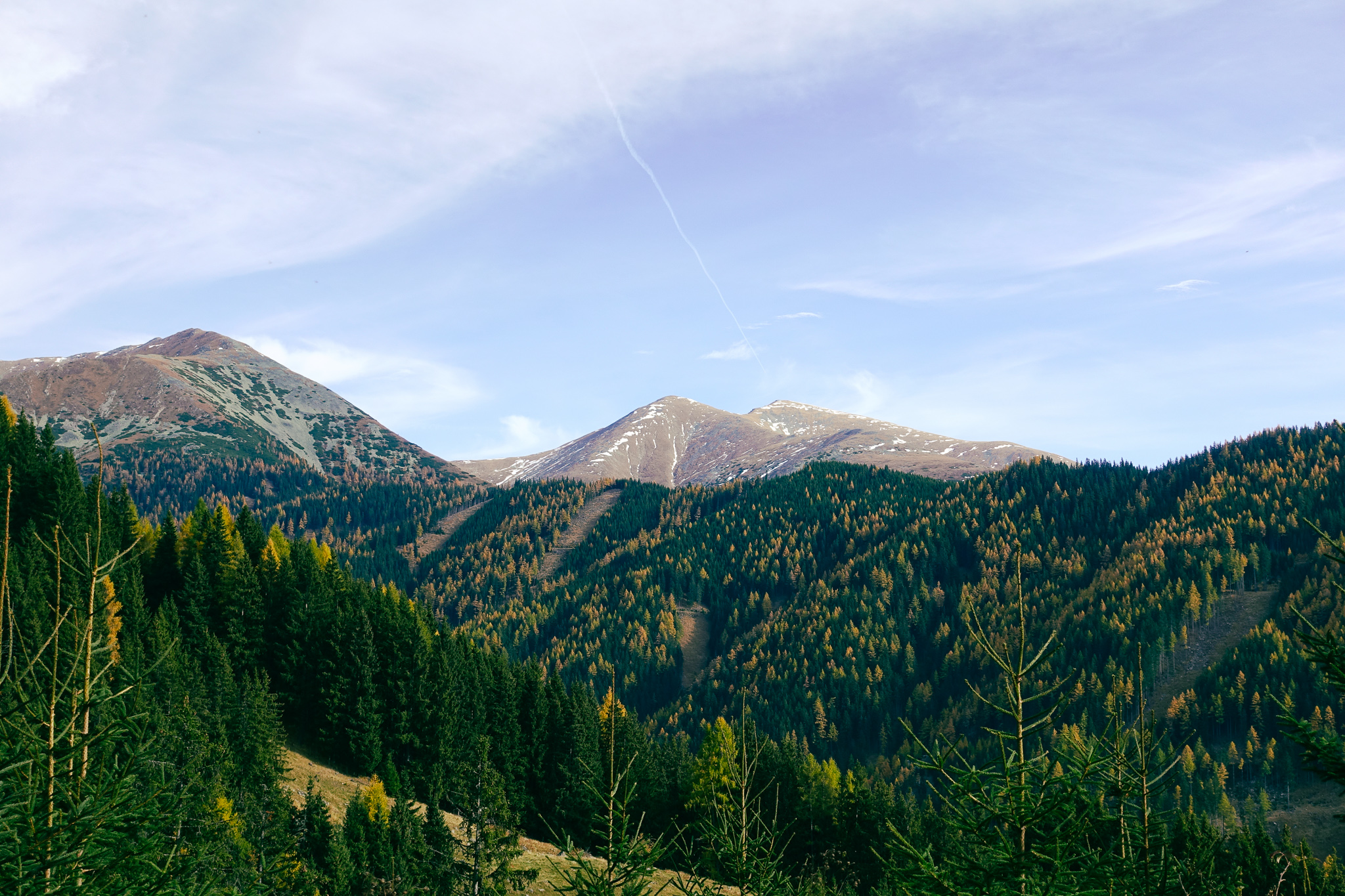 Am Pletzen gab es nicht nur beißenden Wind sondern auch eine großartige Aussicht auf die umliegenden und auch weiter entfernten Gipfel. Mit 2350müA hat man hier auch schon einige Höhenmeter zurückgelegt (ca. 1200HM) und wir planten nicht denselben Weg zurückzugehen, sondern über die Hochfläche weglos bis zum Steinmandl zu gehen. Dort angekommen gingen wir über unebenes Steilgras nach unten und orientierten uns am Tal wo ein Hochsitz und eine Forststraße uns bald begrüßt haben.