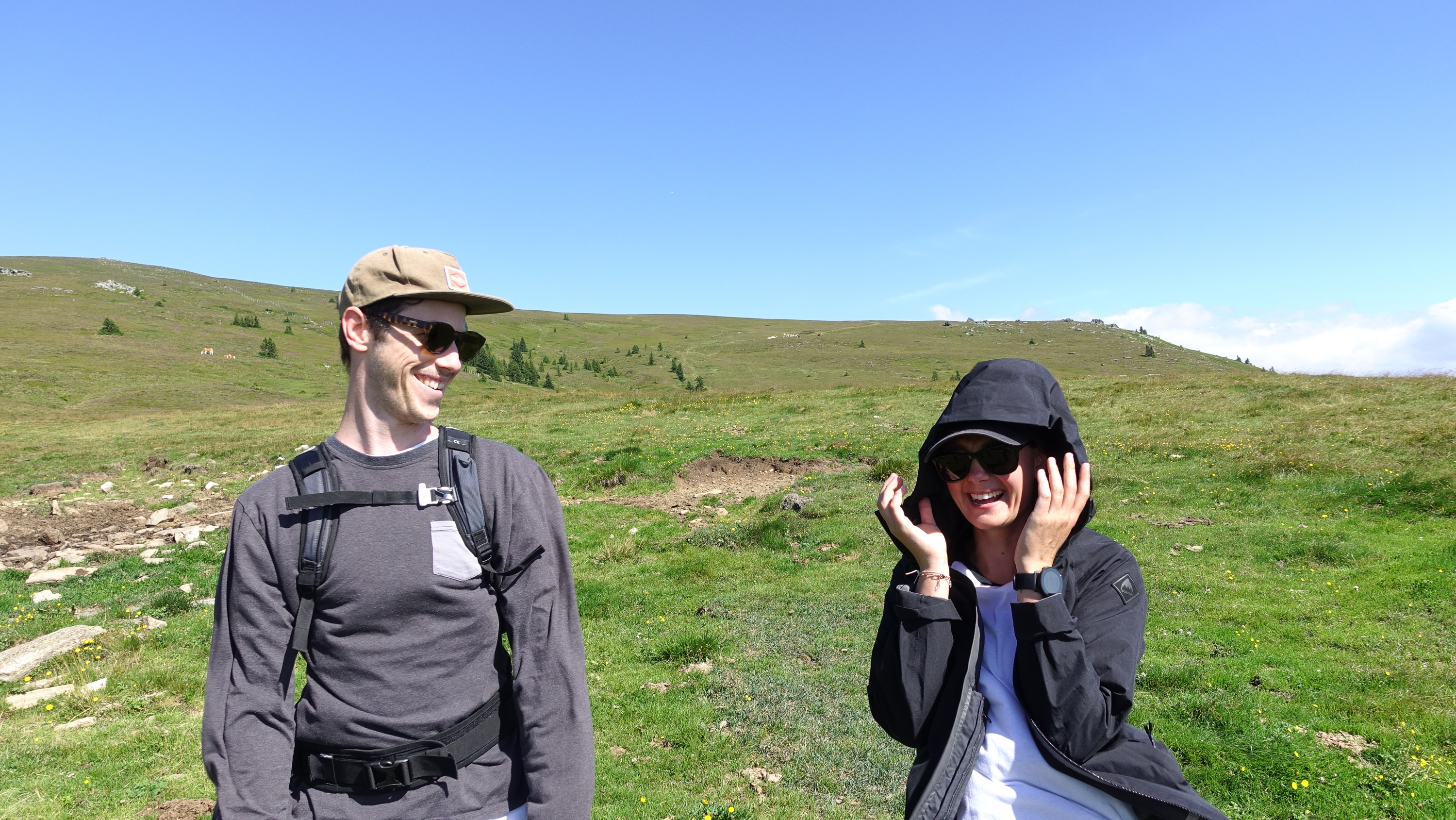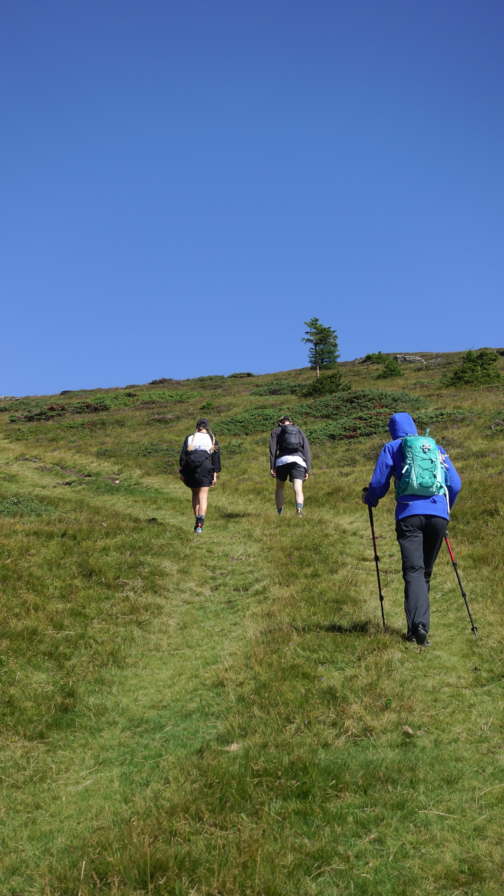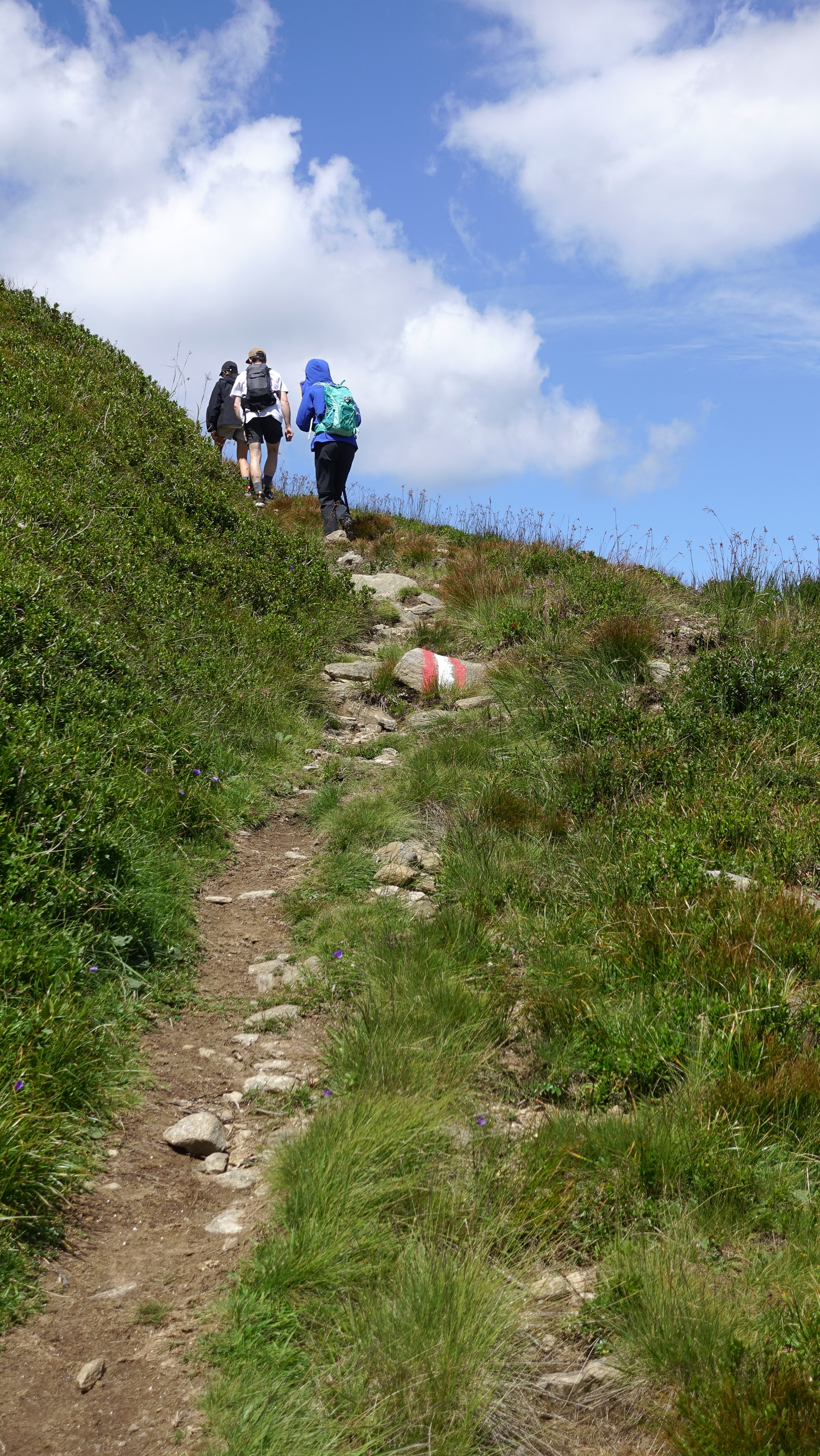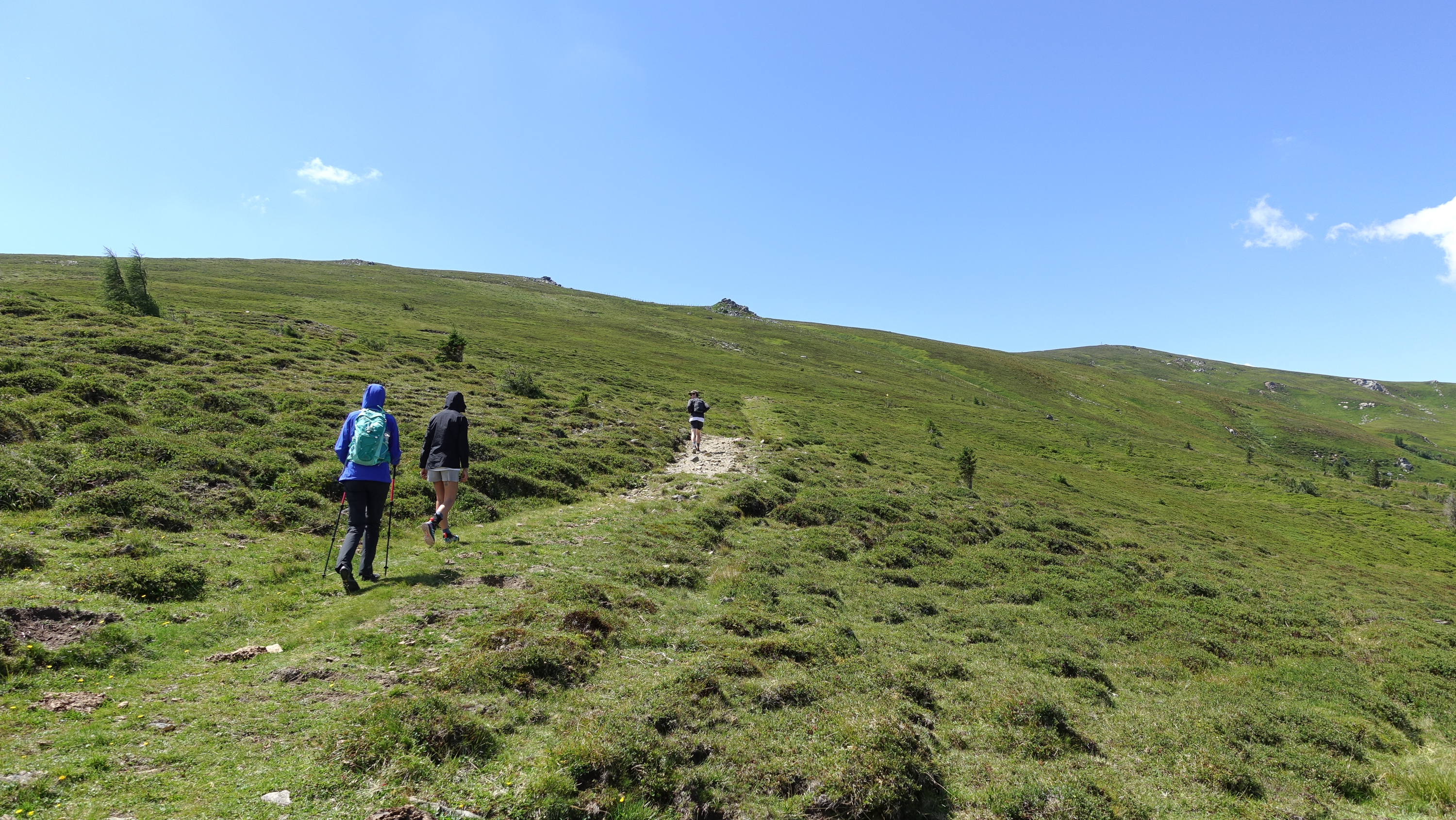 Als wir bei der Zechhütte ausgestiegen sind, blies uns erstmal ein kalter Wind um die Ohren. Ein Hochsommertag und wir haben gleich die langen Hosen angezogen, Pullover übergestülpt und Windjacken angezogen – etwas überrascht waren wir da schon.