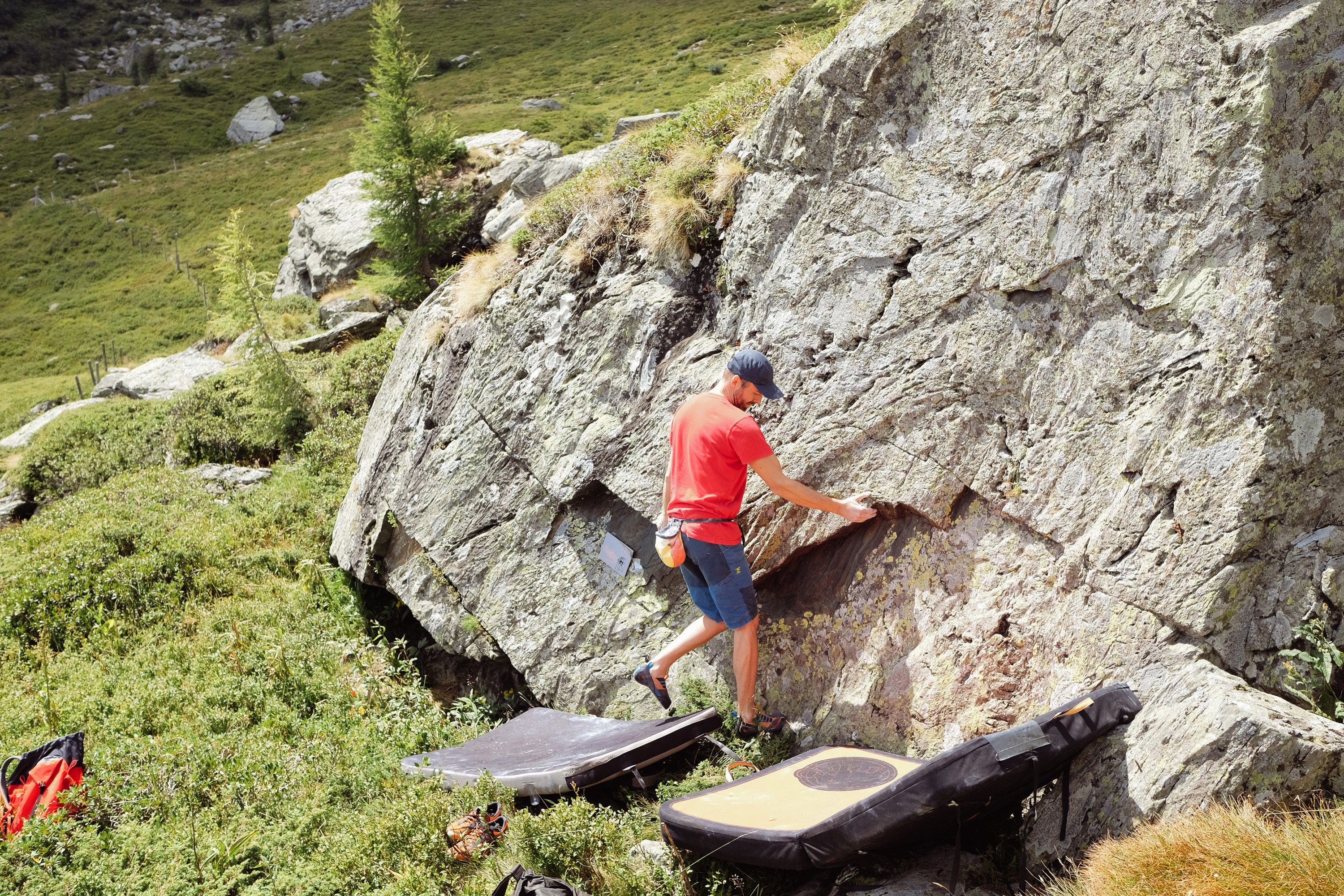 Positiv ist natürlich die Seehöhe von fast 2000m.ü.A. – auch im Hochsommer kann man hier ein wenig bouldern, die leichte Erreichbarkeit vom Parkplatz und natürlich die Verteilung der Schwierigkeitsgrade – hier findet jeder Softmover etwas zu tun! Außerdem kann man nach dem Bouldern einen gepflegten Aperol Spritz trinken und es gäbe sicher noch ein paar Boulder, die man für ein vollständig entwickeltes Gebiet putzen und begehen könnte.