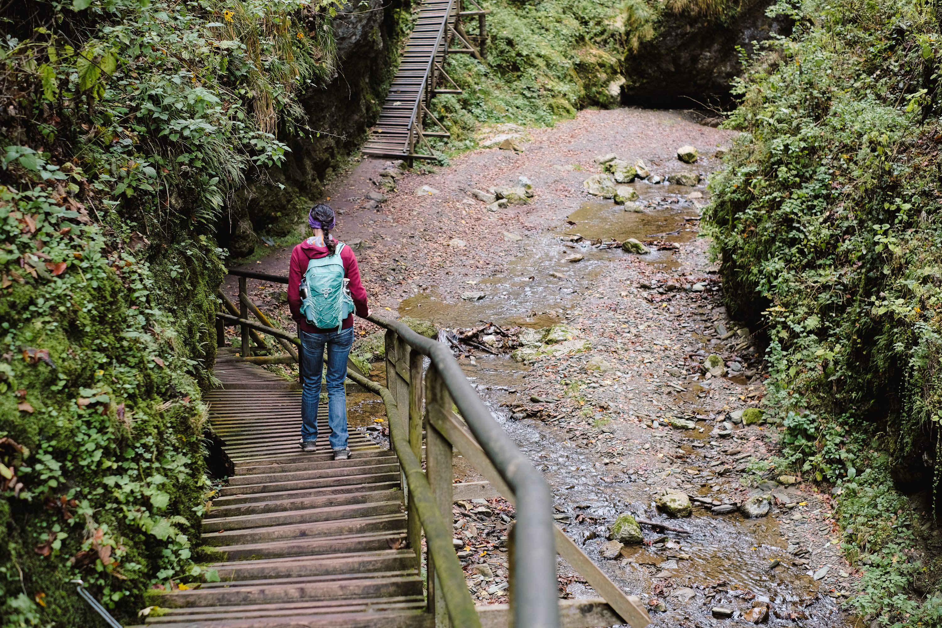 Die „Navigation“ gestaltet sich recht einfach, gleich nach dem Gasthaus biegt man links ab und folgt den Wegweisern, dafür bekommt man einen Touch von Klamm und geht über Steige und Stiegen mal hinauf, mal hinab, durch die Klamm, die im Herbst auch recht ordentlich Wasser hatte. In niederschlagsarmen Sommern wird das wahrscheinlich weniger ein Erlebnis sein.