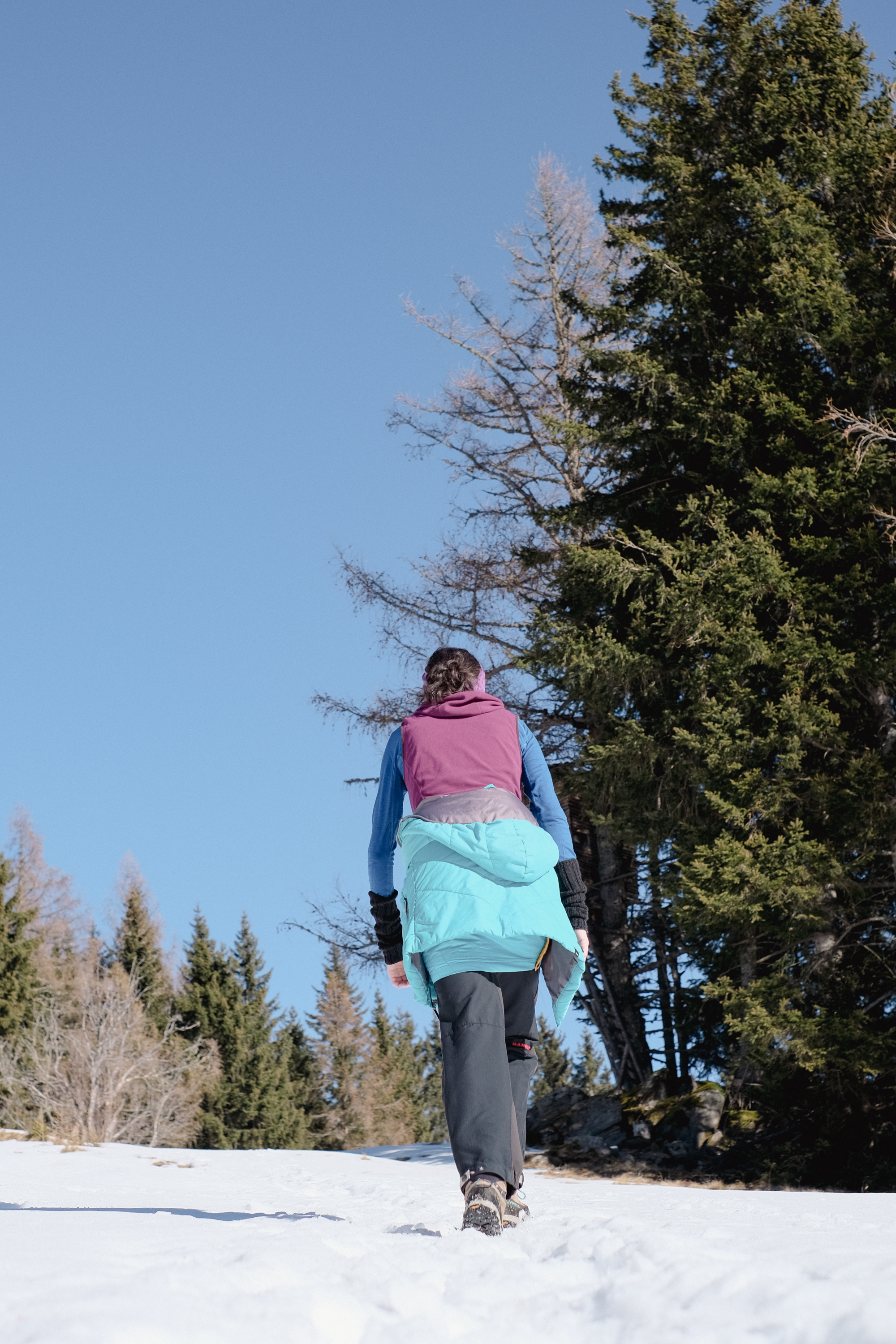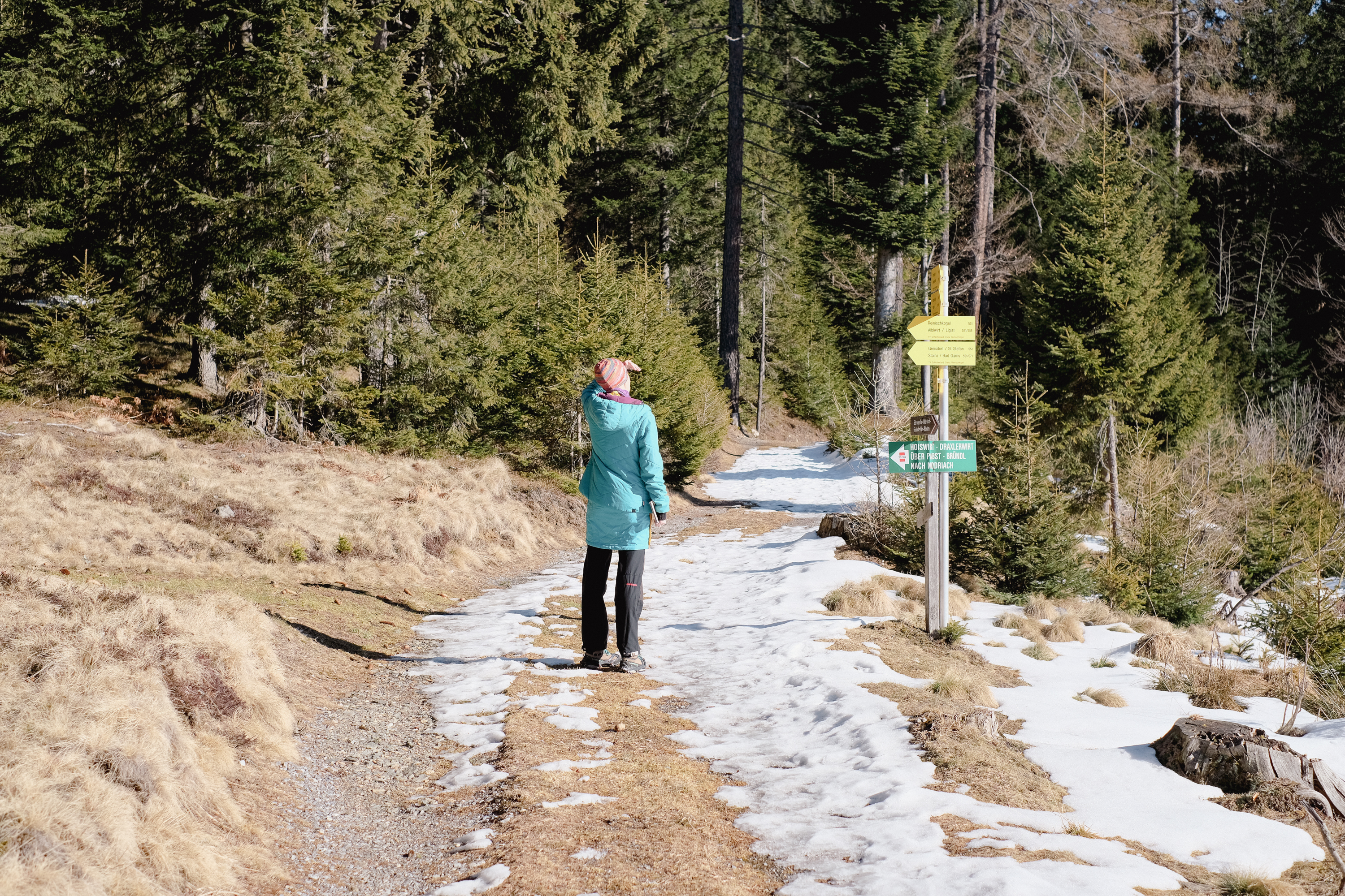 Über den vereisten Schnee zu gehen, war zwar etwas mühsam, Grödel leisteten hier aber gute Dienste und zwischendurch kamen wir sogar in die Sonne. Eigentlich folgten wir hier die meiste Zeit einer Forststraße, was für mich zwar unspektakulär war, aber auch das sollte sich nur kurze Zeit später ändern.