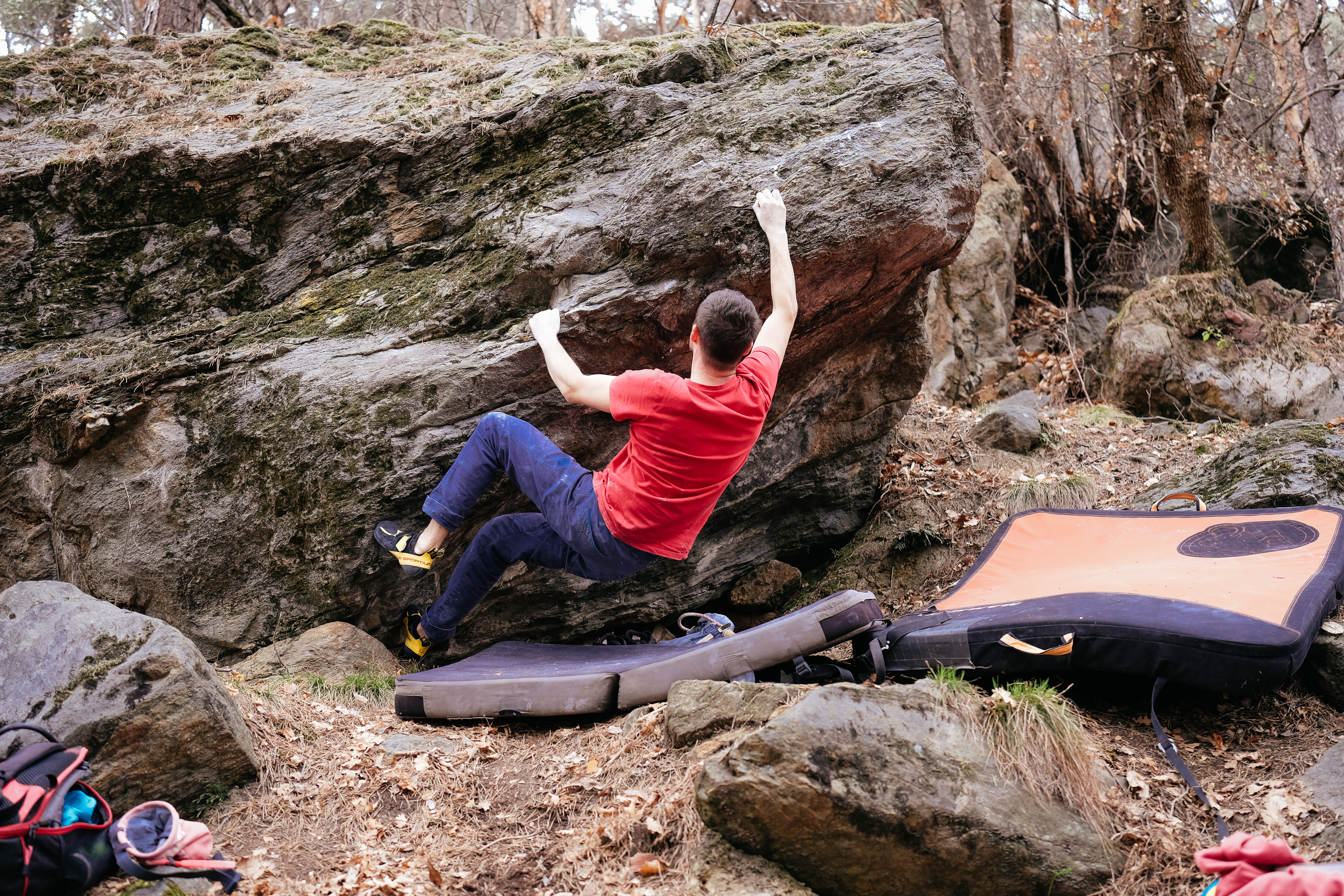 Am Rückweg versuchte ich noch den Boulder „Pain in my finger“, der hatte leider einen dermaßen low-low Start, dass die Hände fast unterm Hintern waren und das war mir dann einfach zu blöd hier Kraft zu investieren bzw. war mir wirklich nicht klar, wie ich hier abheben sollte.