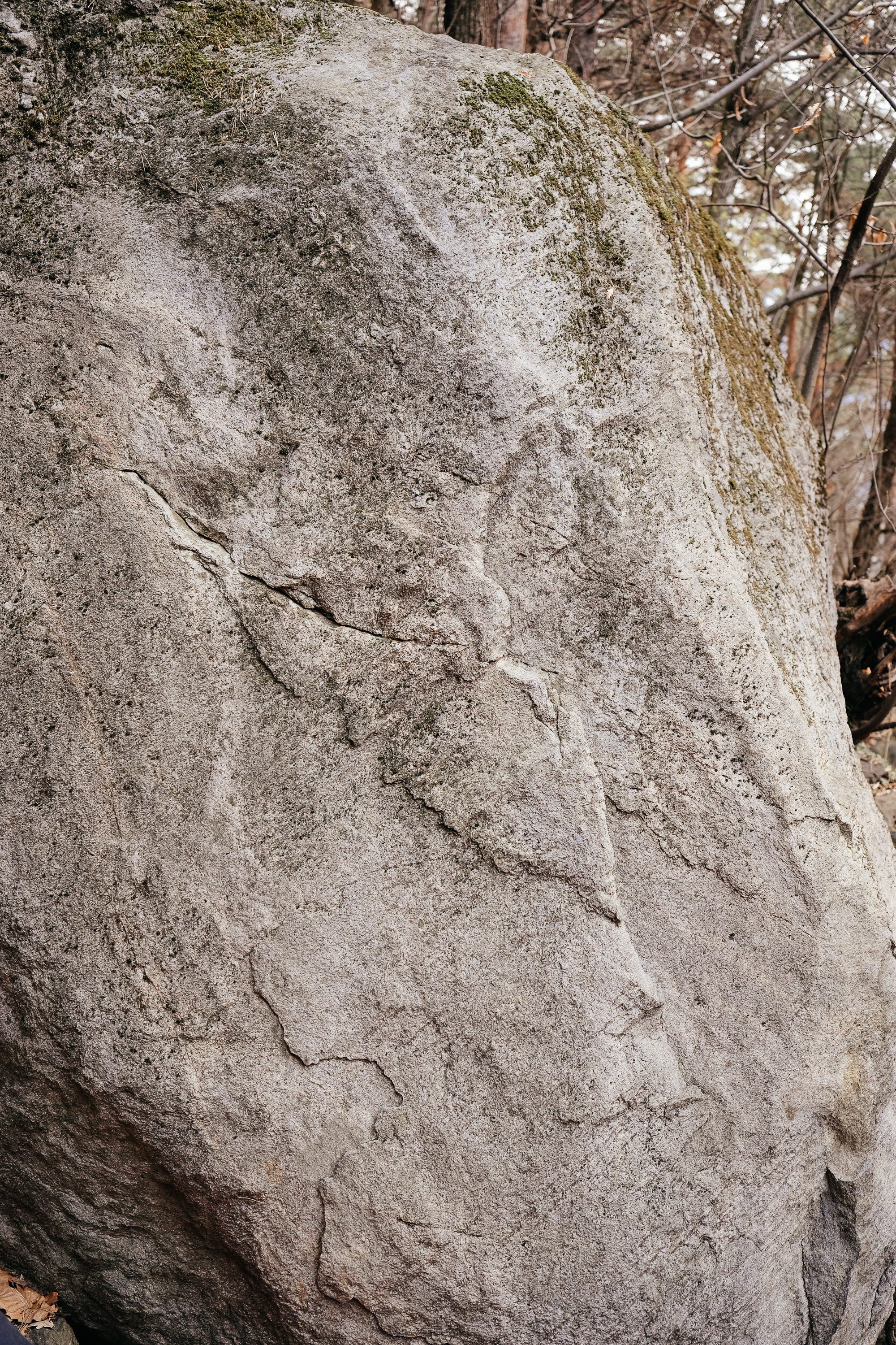 Im Übrigen, es war Samstag, und wir haben niemand anderen mit Crashpads oder gar bouldern gesehen. Die guten Linien waren angechalkt, aber die eher mittelprächtigen dürften in letzter Zeit nur wenig Begehungen gesehen haben, sie wirken ein wenig verwahrlost. Angezeichnet bzw. angeschrieben waren die Boulder zwar einmal, die Markierungen sind aber mittlerweile verblasst oder verschwunden, so ist die Orientierung bzw. der Start oft nicht ganz klar, v.a. wenn keine Fotos im Topo sind, aber im Großen und Ganzen haben wir uns gut zurechtgefunden.