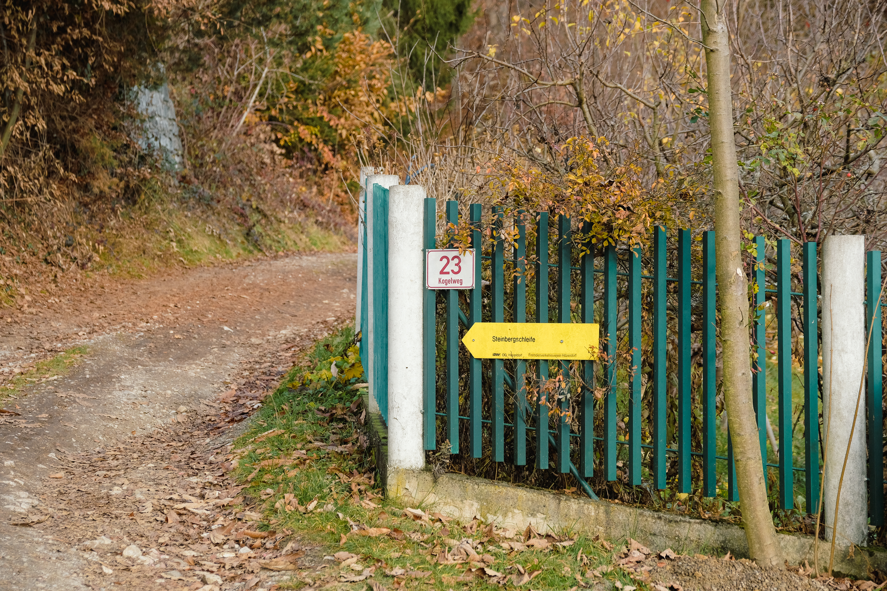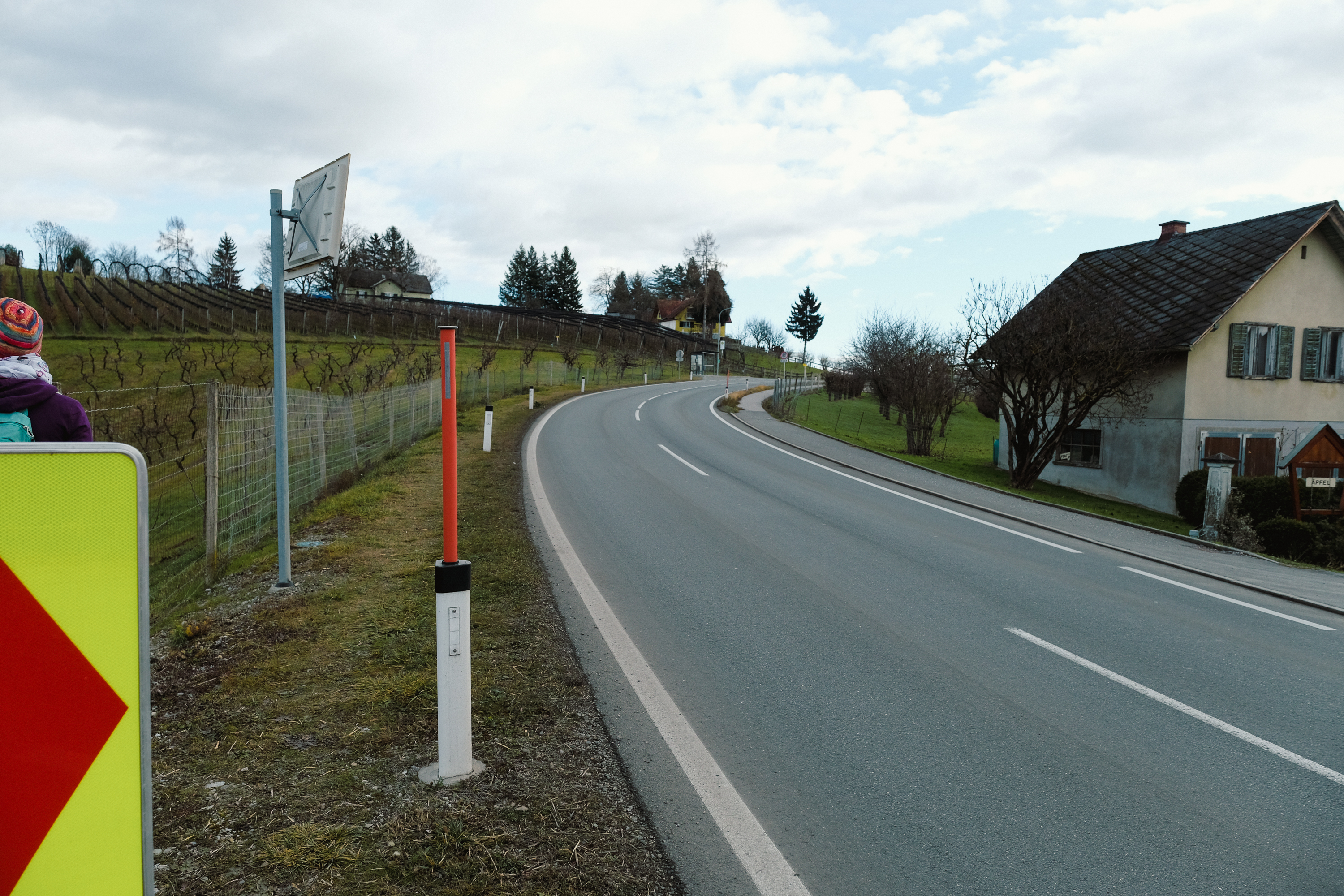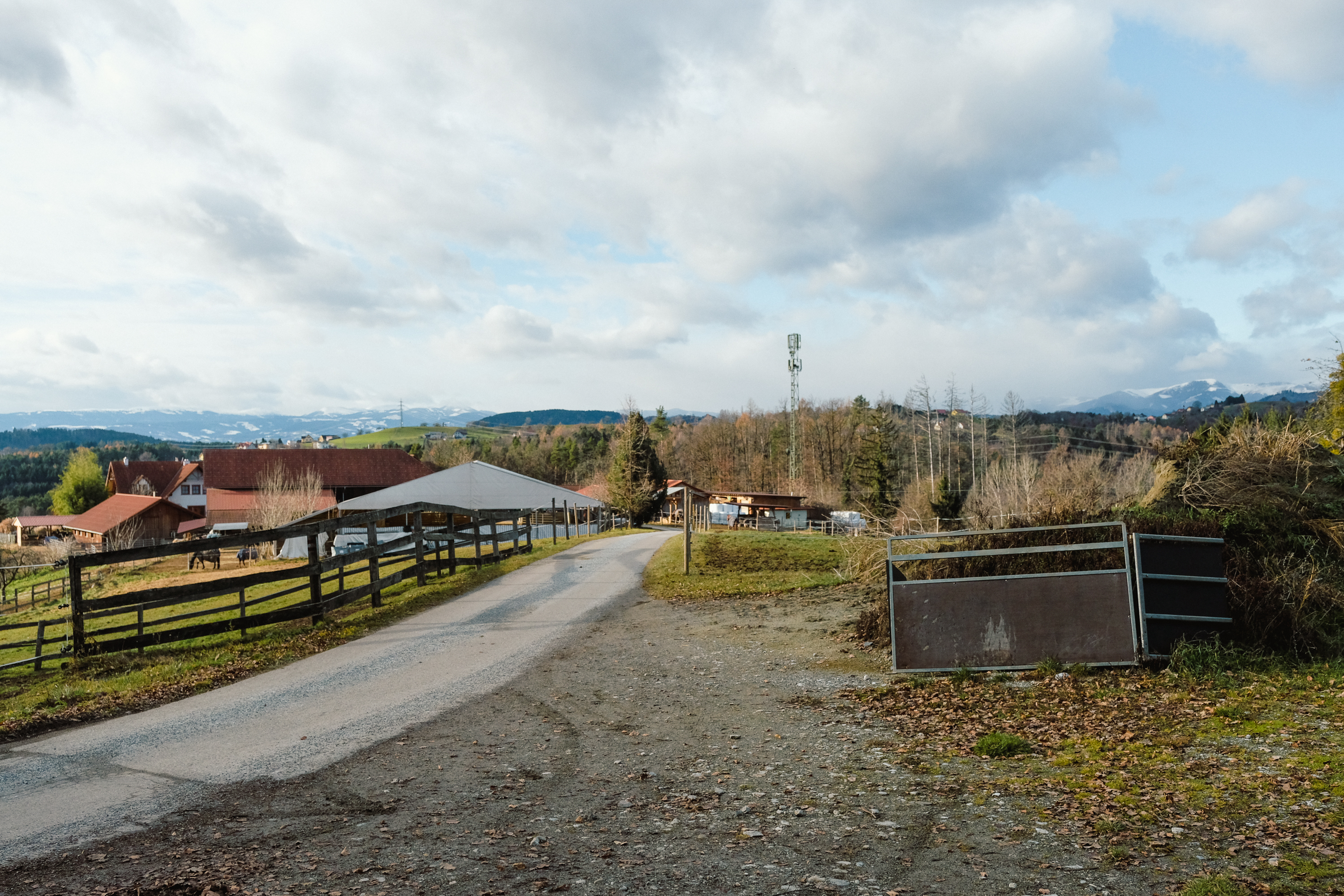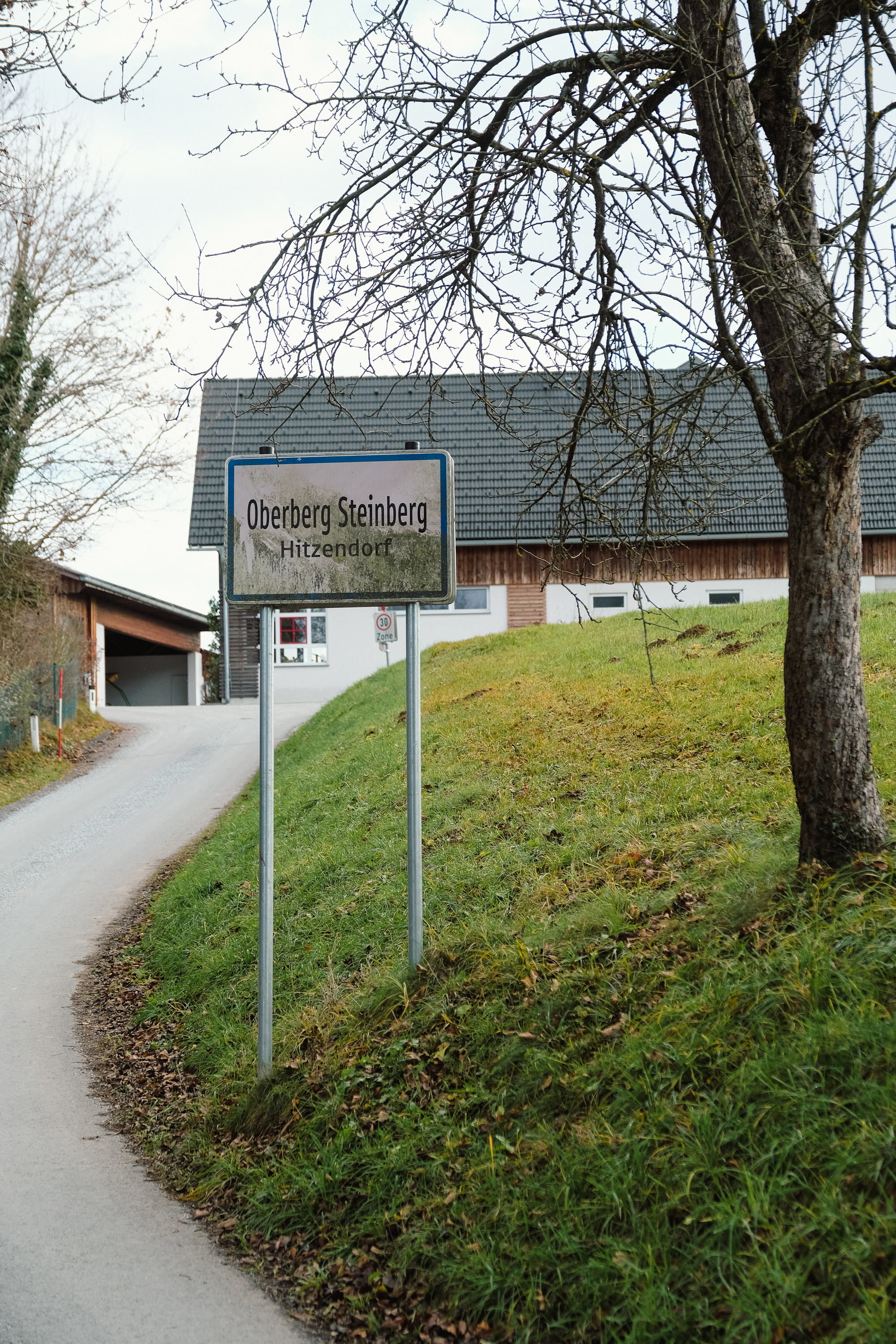 Beinahe übersahen wir die erste Abzweigung. Eine Schotterstraße, die an einem Haus vorbeiführt, brachte uns in den Wald und wir machten ein paar Höhenmeter Richtung Steinberg. Auch der Kreislauf kam hier in Schwung und so war uns nicht lange kalt.
