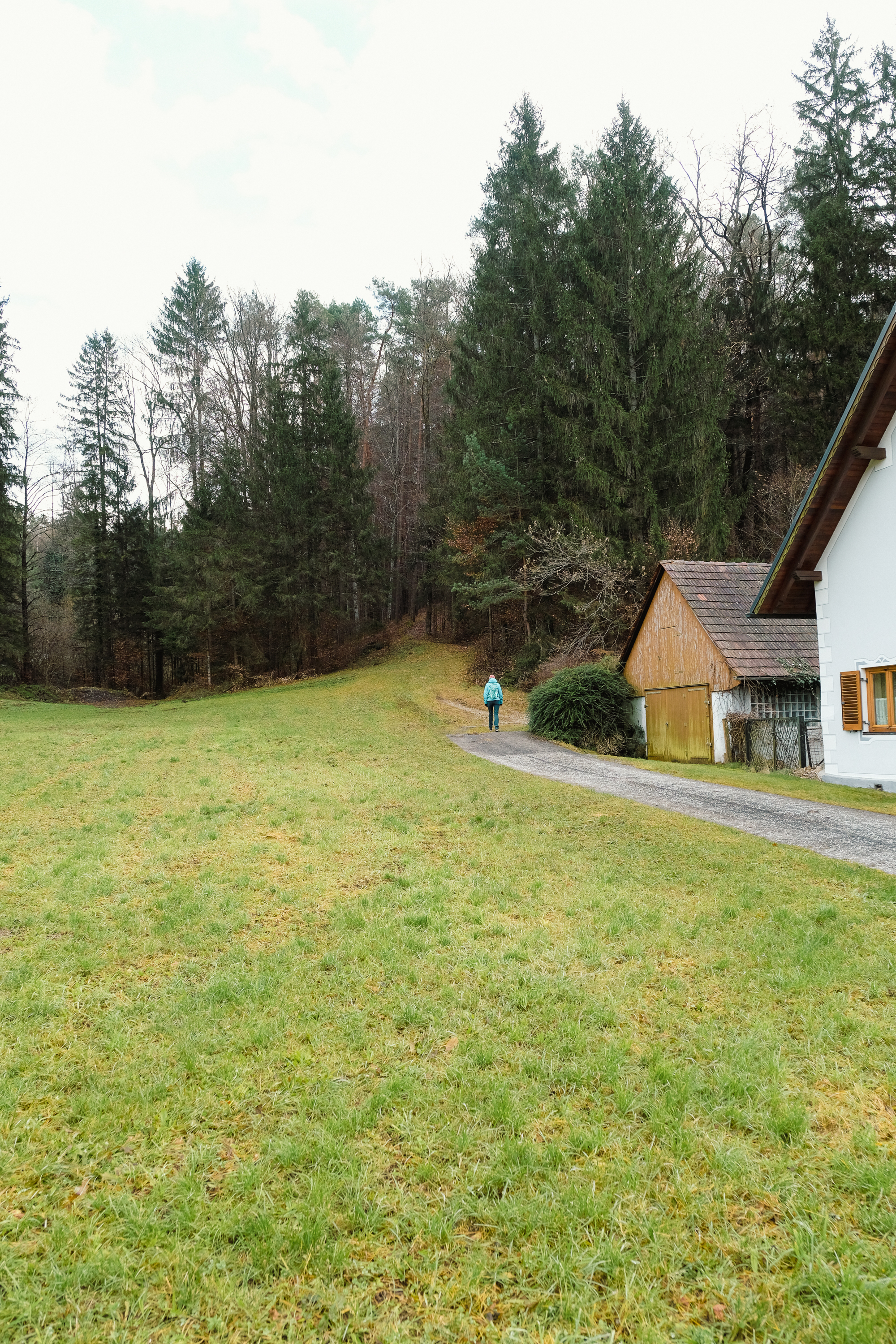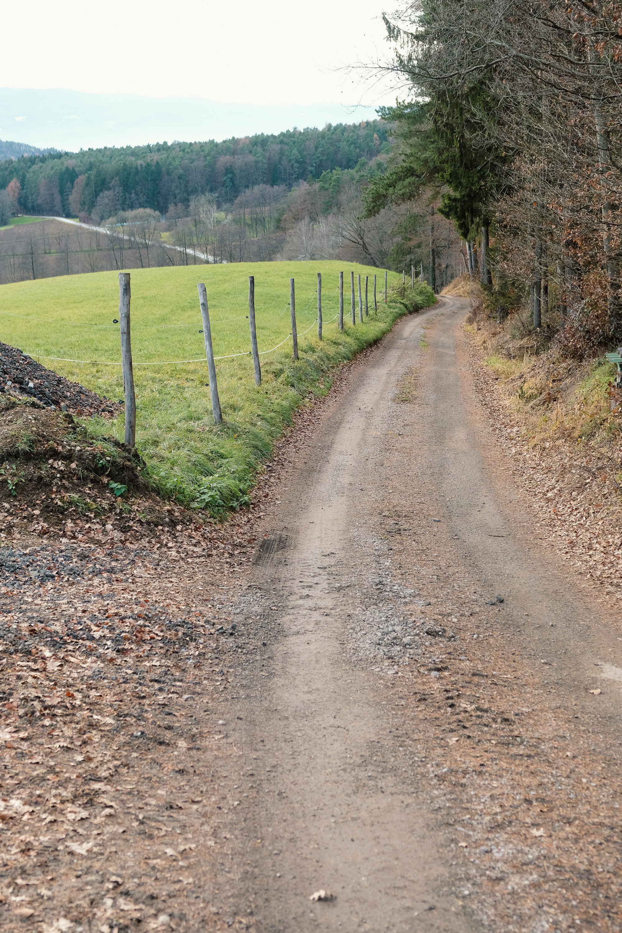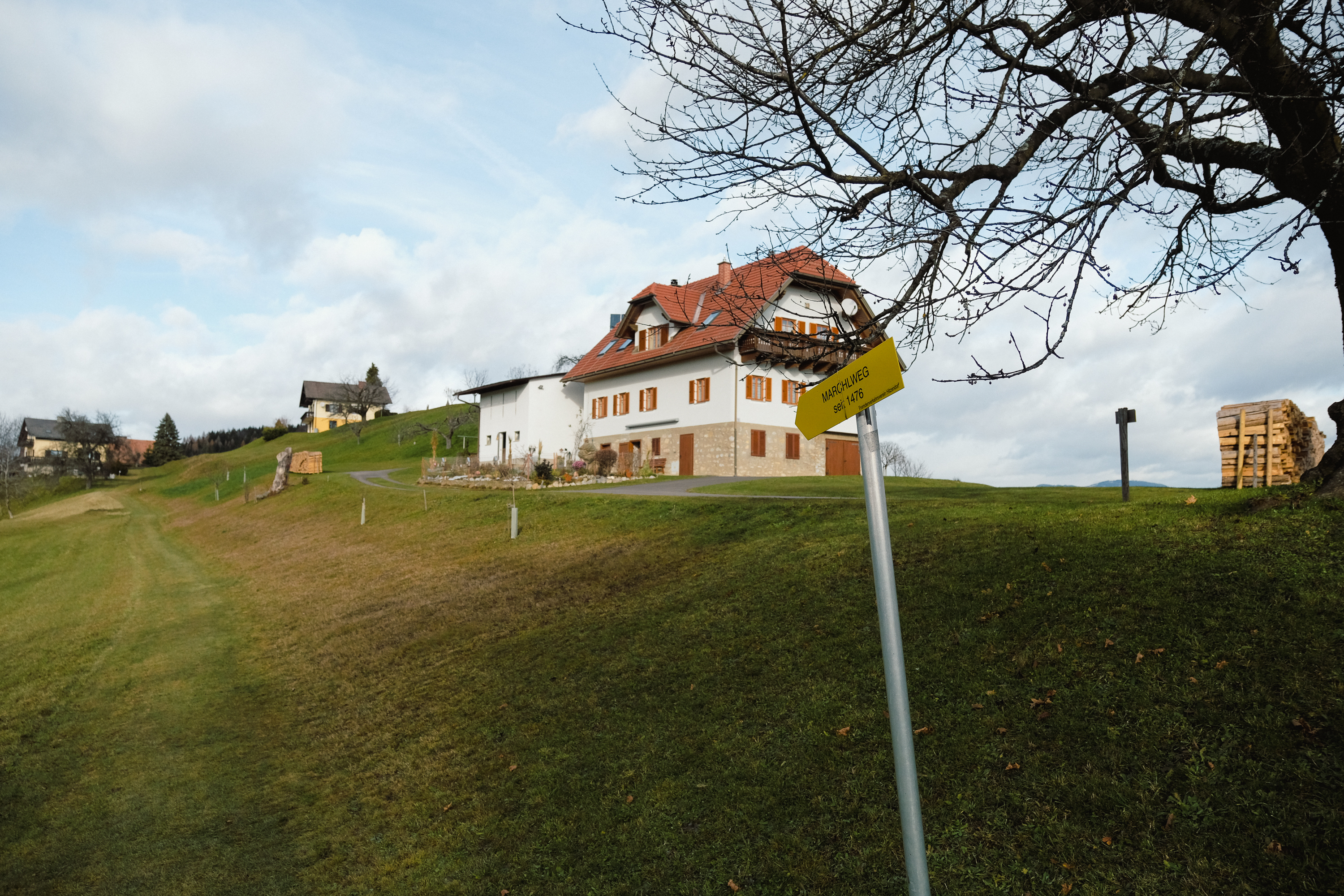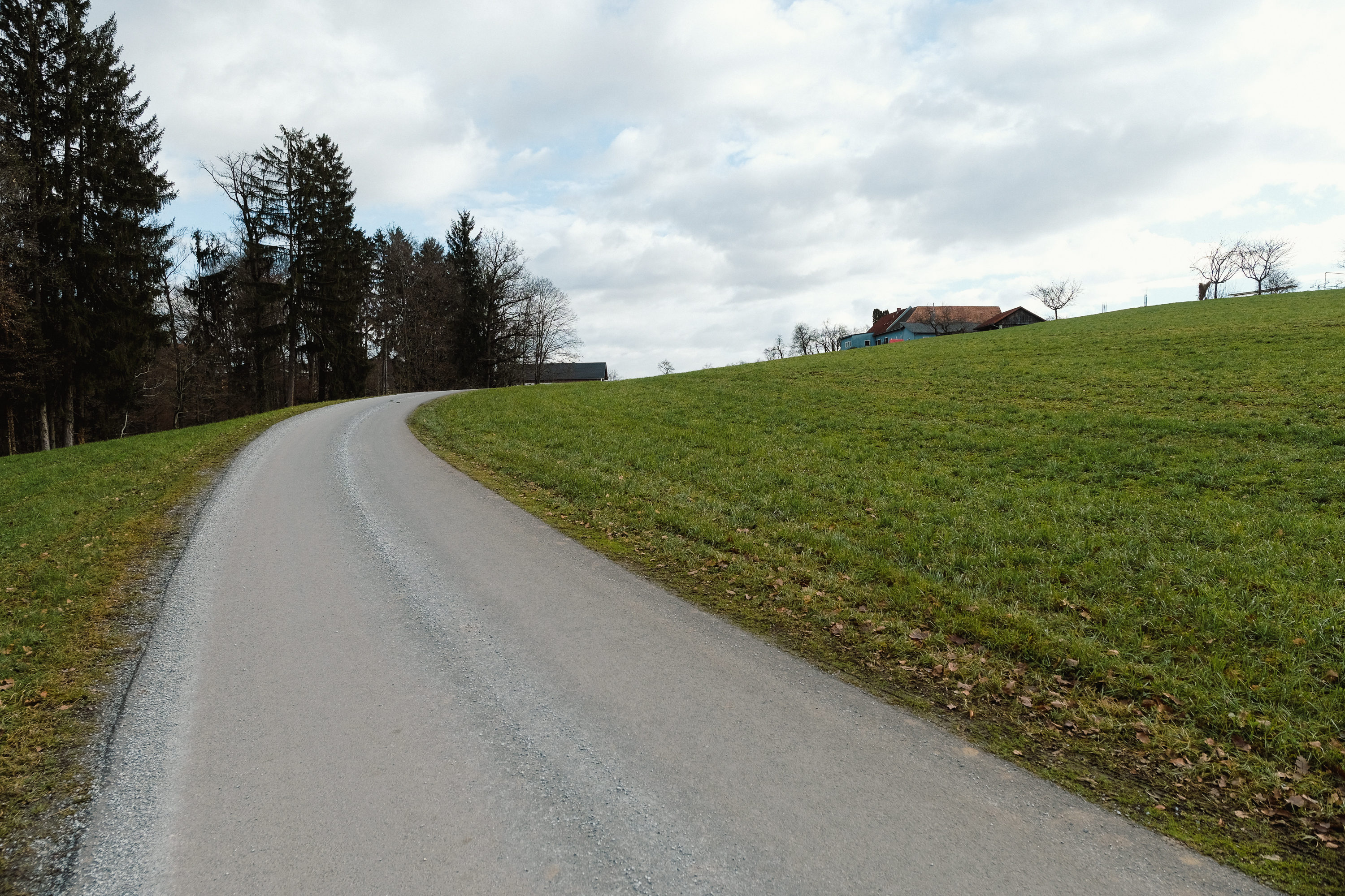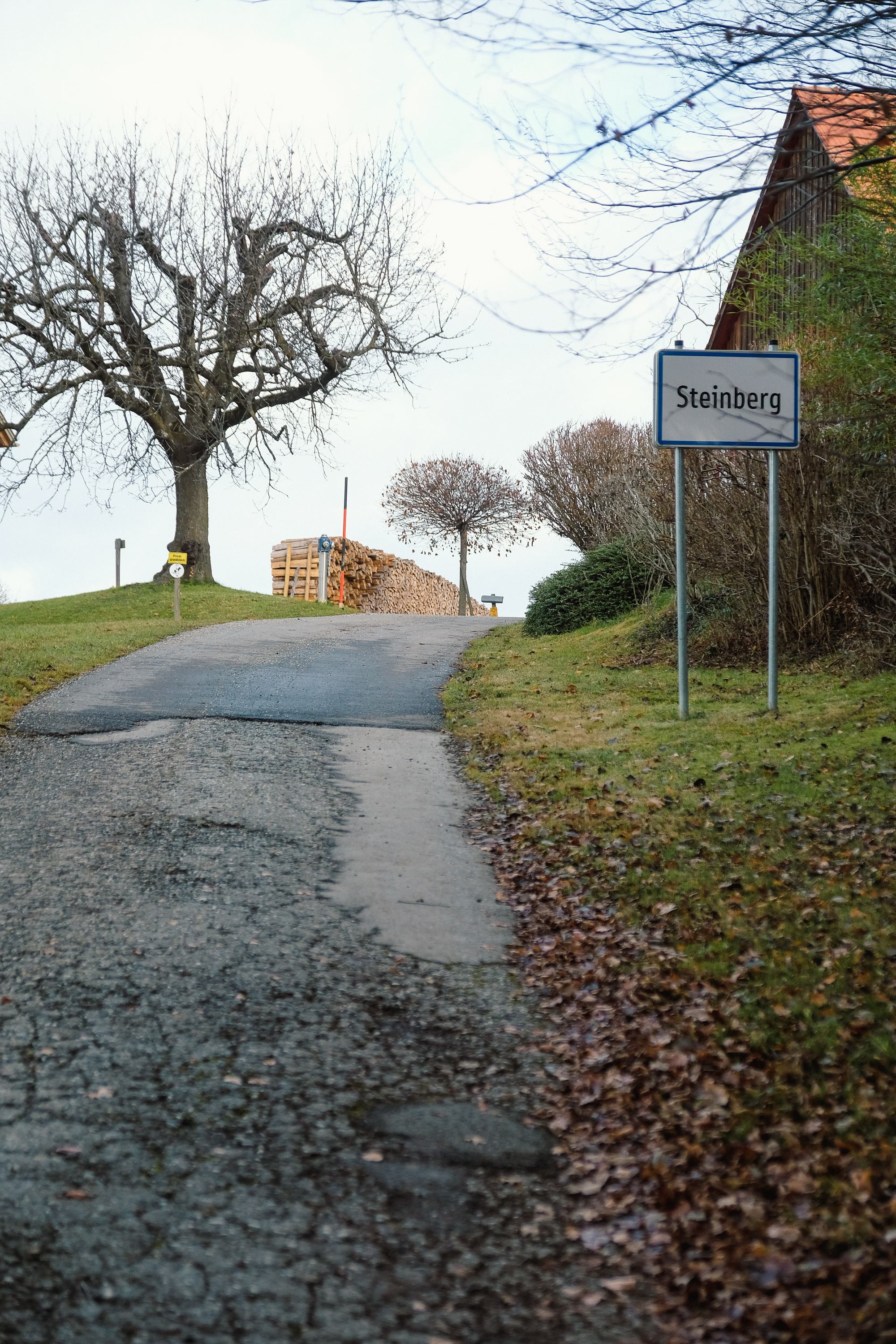 Beinahe übersahen wir die erste Abzweigung. Eine Schotterstraße, die an einem Haus vorbeiführt, brachte uns in den Wald und wir machten ein paar Höhenmeter Richtung Steinberg. Auch der Kreislauf kam hier in Schwung und so war uns nicht lange kalt.
