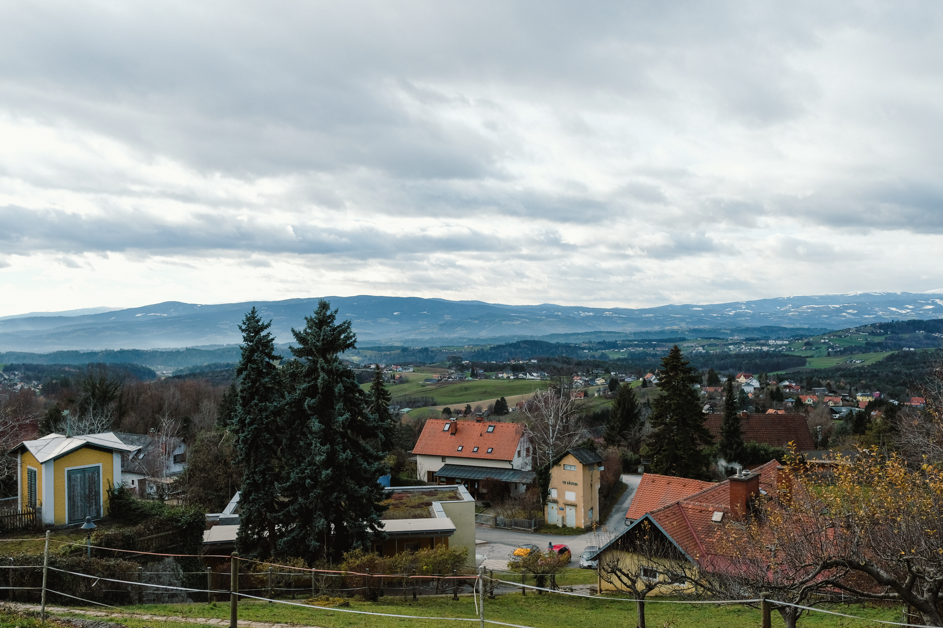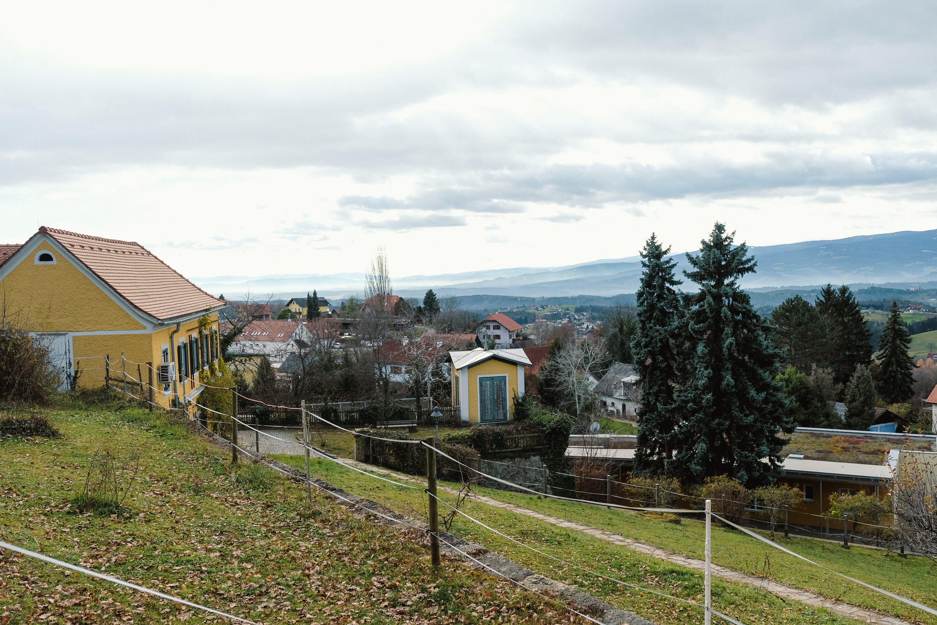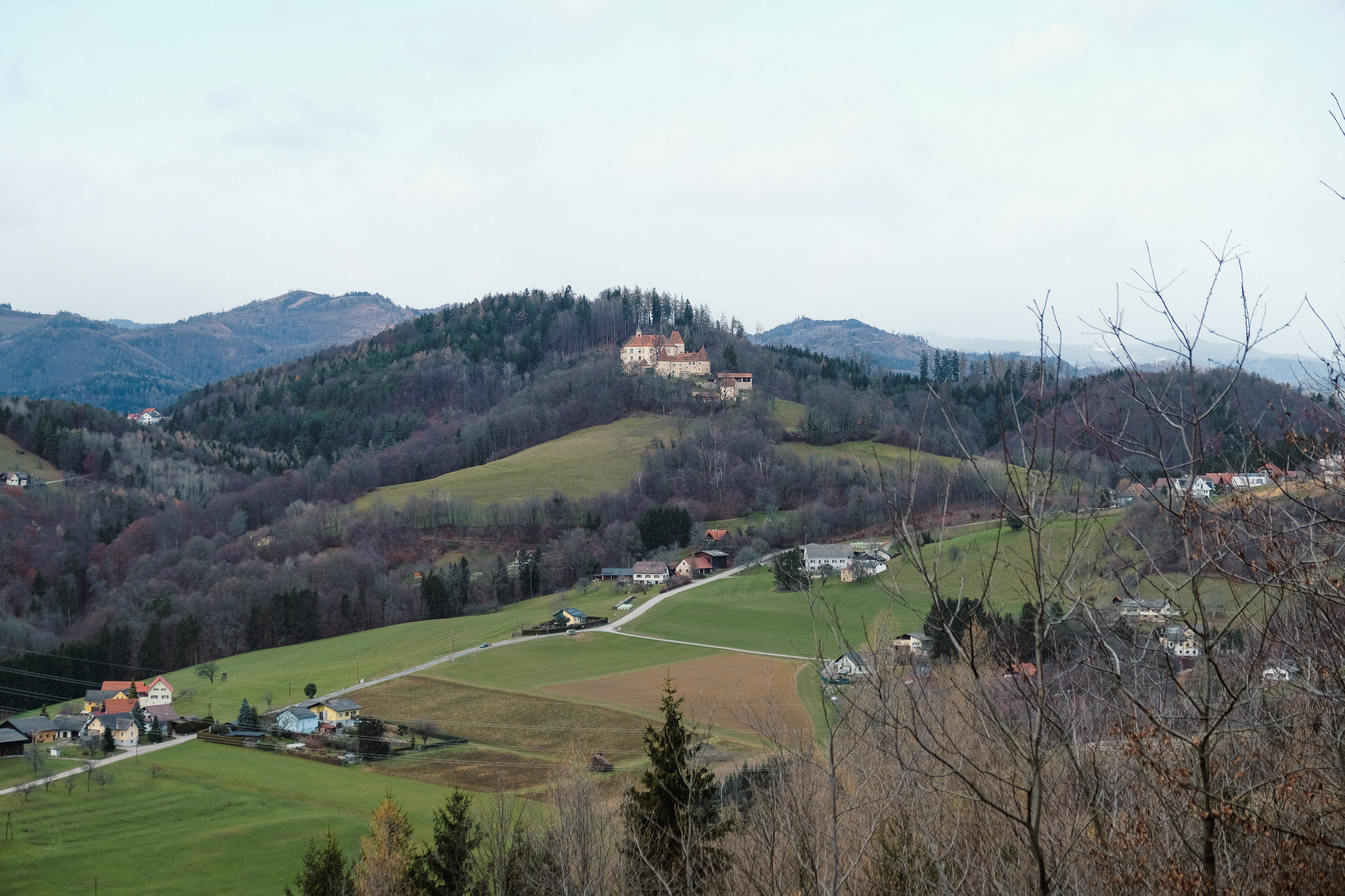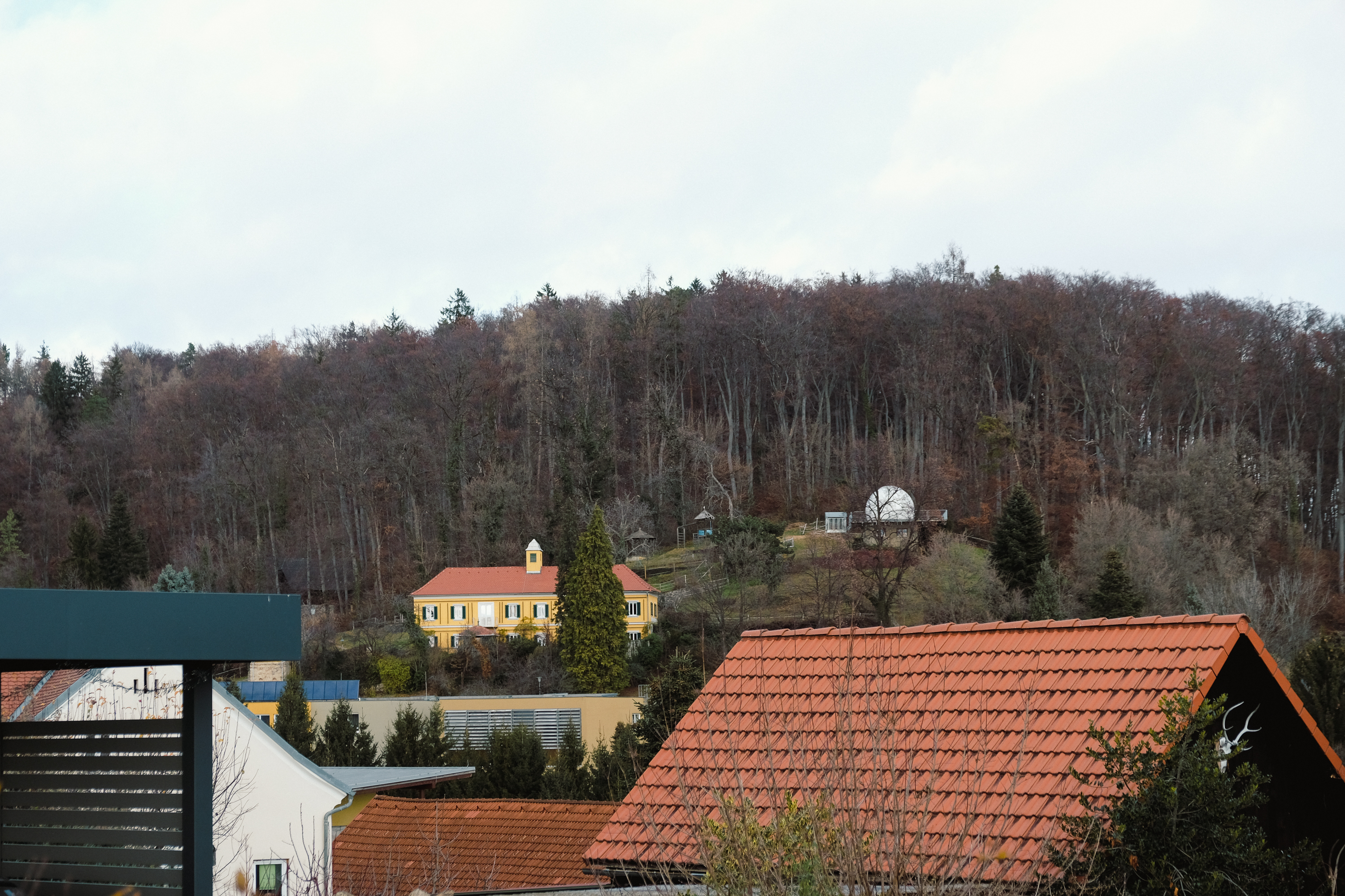 Mit leicht bewölktem Himmel und einer Aussicht Richtung Koralpe und Gleinalpe folgten wir der Steinbergschleife bis zum Anton Afritsch Kinderdorf und der Sternwarte. Eher unspektakulär sucht sich der Weg hier alle Möglichkeiten um durch Wald oder auf Pfaden zu gehen. Ein wenig Asphalt blieb auch hier nicht aus, wurde aber auf das Mindeste reduziert wie ich fand.