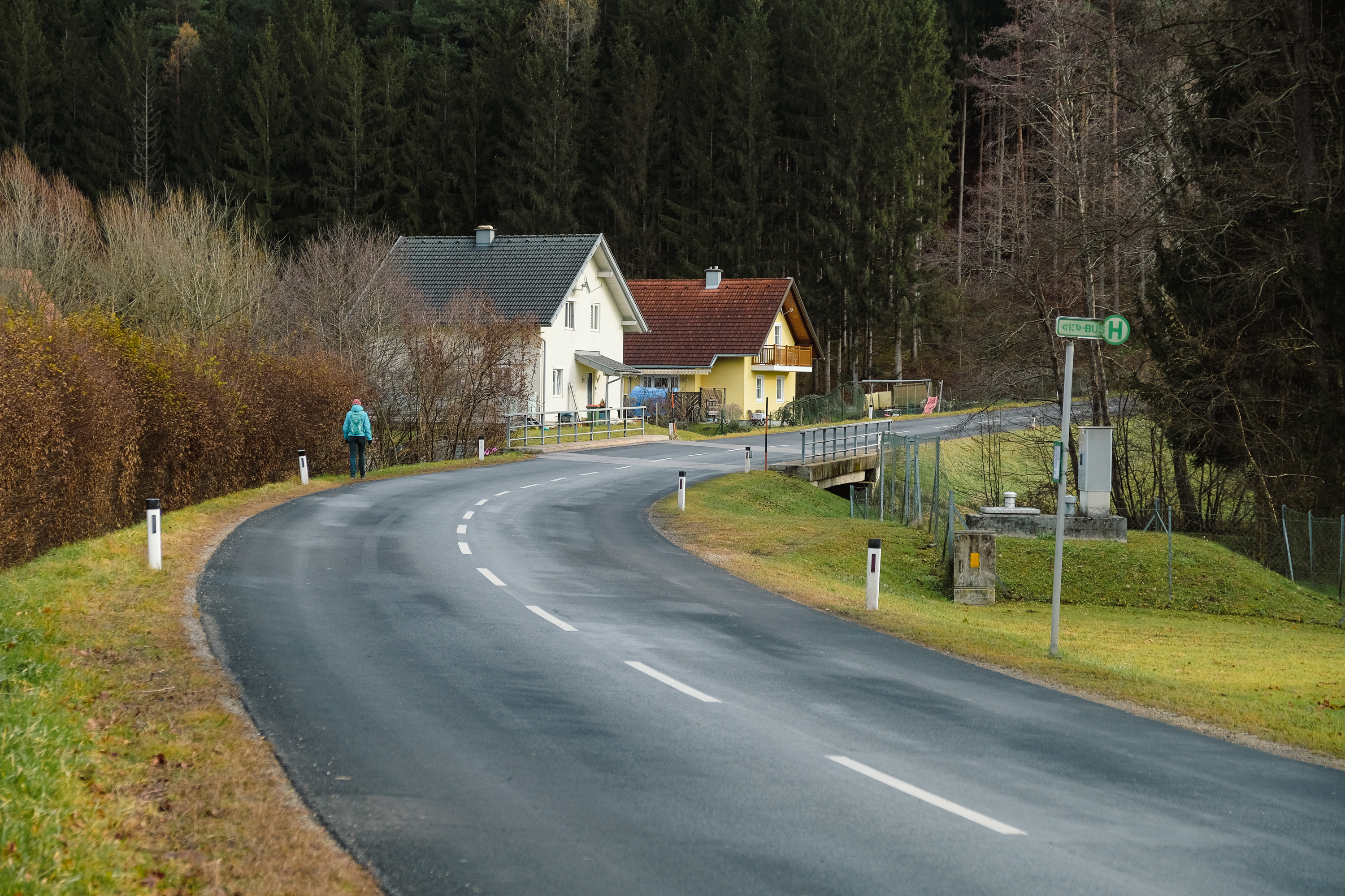 Gestartet sind wir beim GH Rohrbacherhof, gleich gegenüber befindet sich ein mehr als grozügiger Parkplatz und hier kann auch im Anschluss eher klassisch gegessen werden (Öffnungszeiten beachten). Zuerst folgten wir der Straße laut App Richtung Nordost (der Kartendownload vorher macht sich später bei schlechterem Empfang bezahlt) auf dem Gehsteig doch schon bald mussten wir einige Meter neben der Straße gehen, was ich persönlich überhaupt nicht leiden konnte auf Grund des dreckigen Banketts und der oft rücksichtslosen Fahrweise der entgegenkommenden Autos.